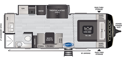 This Keystone Cougar travel trailer has an overall length of 27 feet