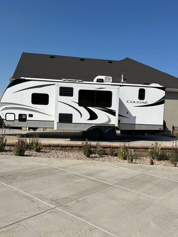 This Keystone Cougar has an overall length of 29.83 feet and comes equipped with 1 power retractable slide-out, 1 power retractable awning, solar panels, 1 A/C unit, and plenty of room to sleep 7. This unit has been well-maintained.