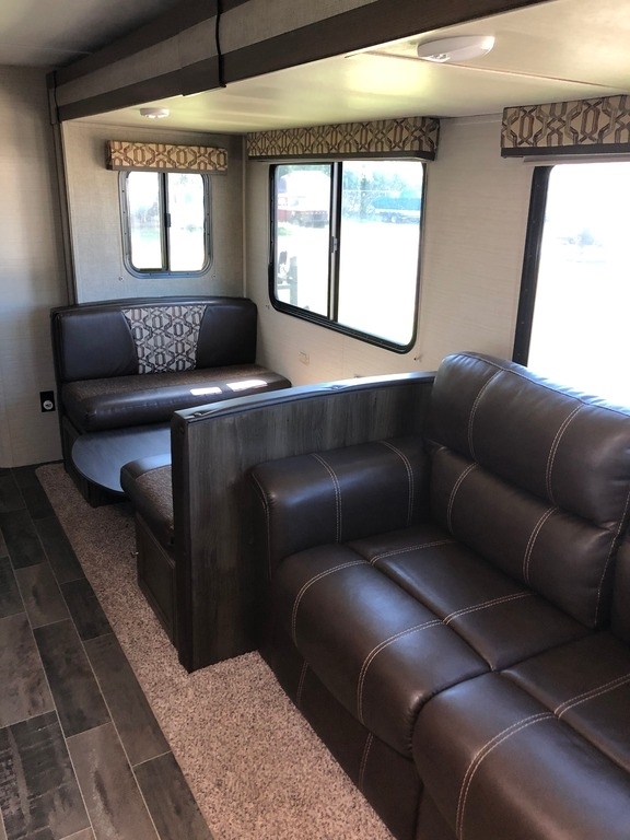 This 2018 Keystone Bullet has an Overall Length of 32 Feet and Comes Equipped with 1 Slide Out, 1 Awning, 1 A/C Unit, and Plenty of Room to Sleep 10.