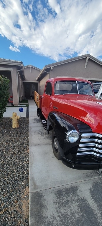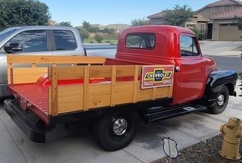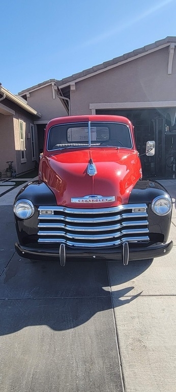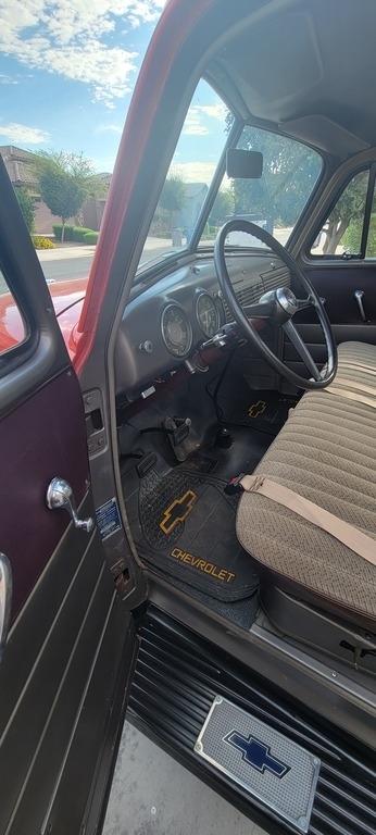 This 1953 Chevrolet is powered by a 216 CI Engine, paired with a 4 Speed Manual Transmission. This 3100 has a Black/Red Exterior and a Silver/Purple Interior.
