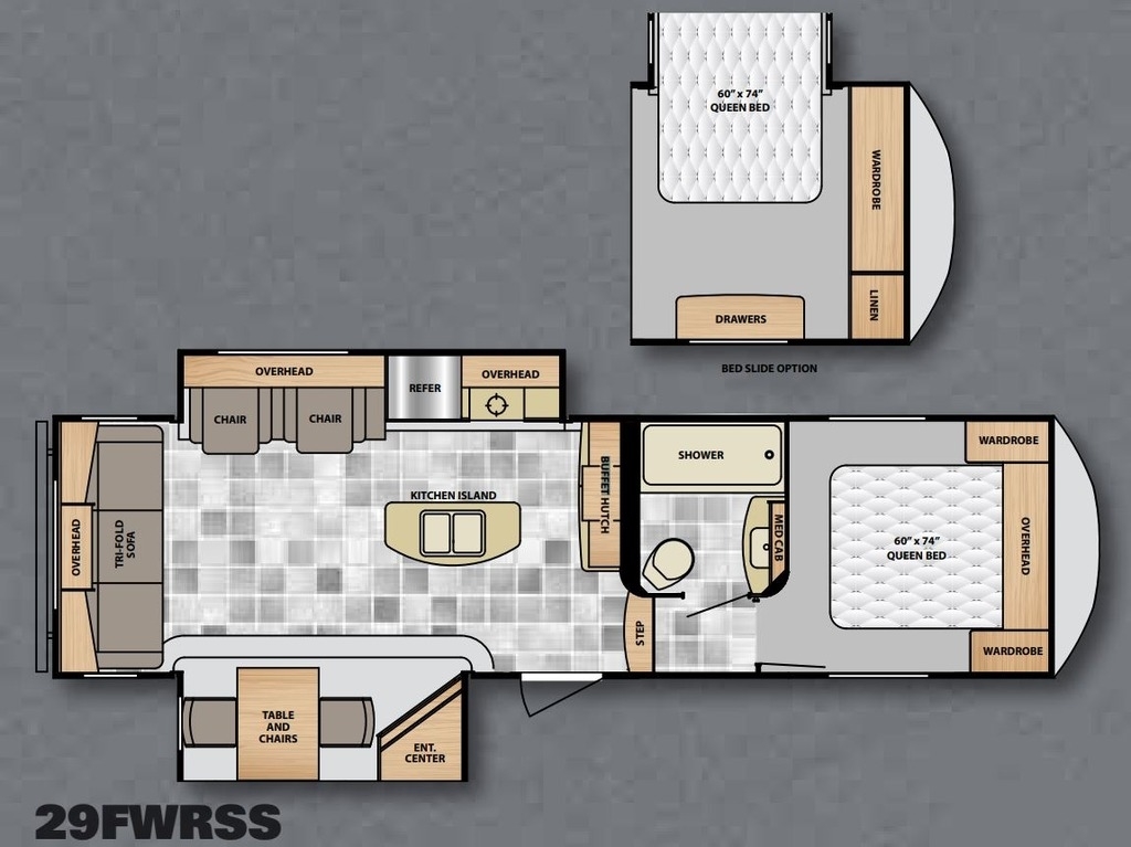 This Fifth Wheel is Non-Pet/Non-Smoking and has not had any Accidents or Water Damage.