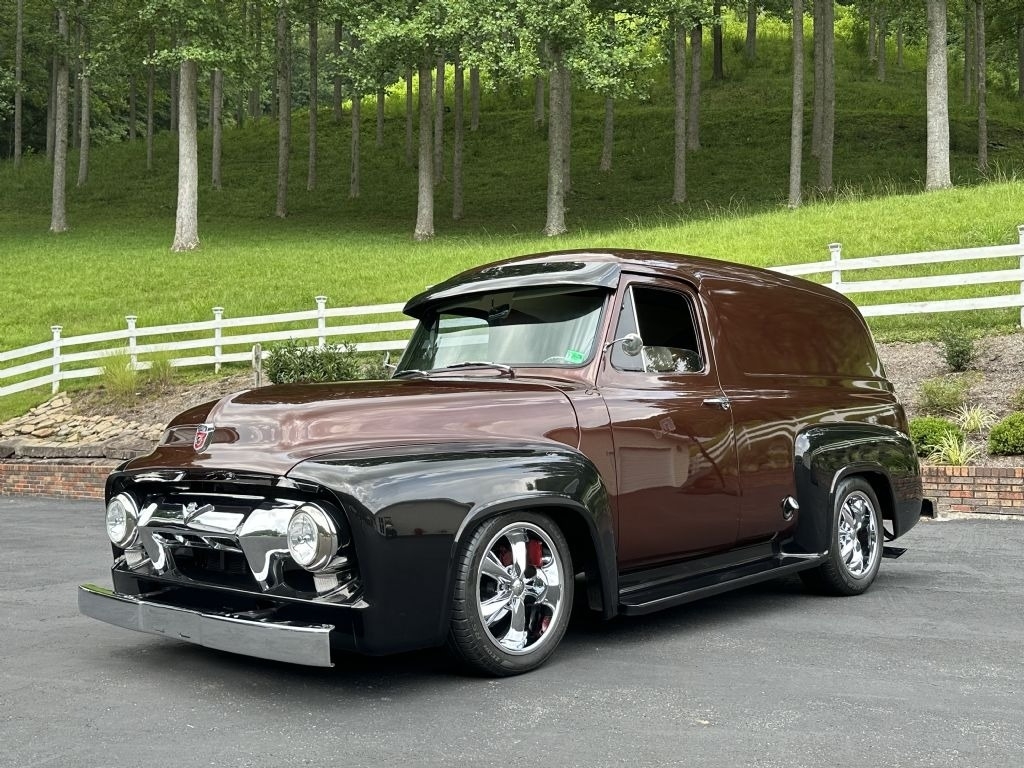 radial tires, completing the custom look. This ’54 Ford F-100 Panel Truck is a rare and expertly