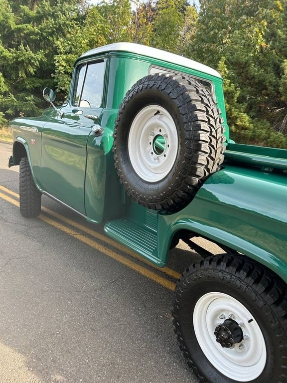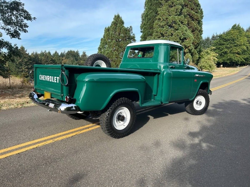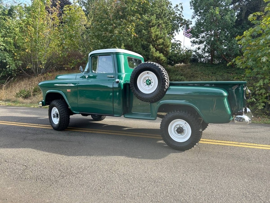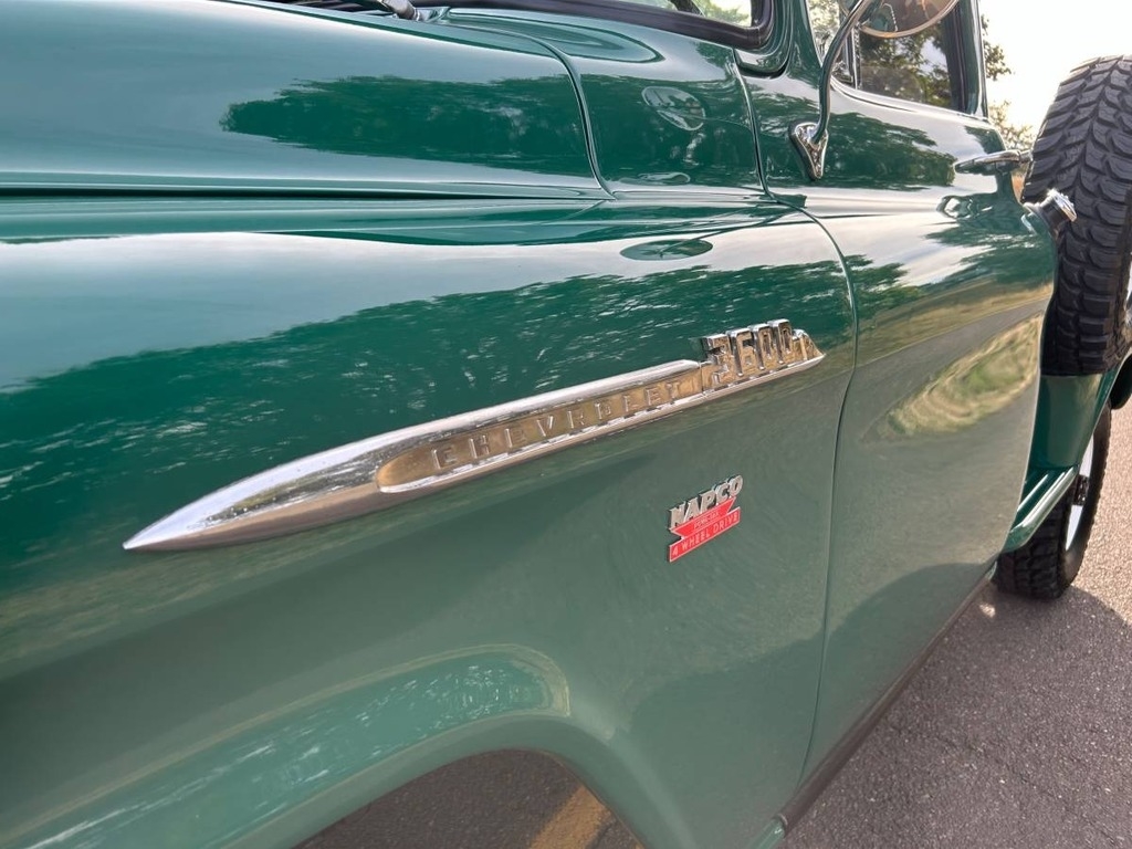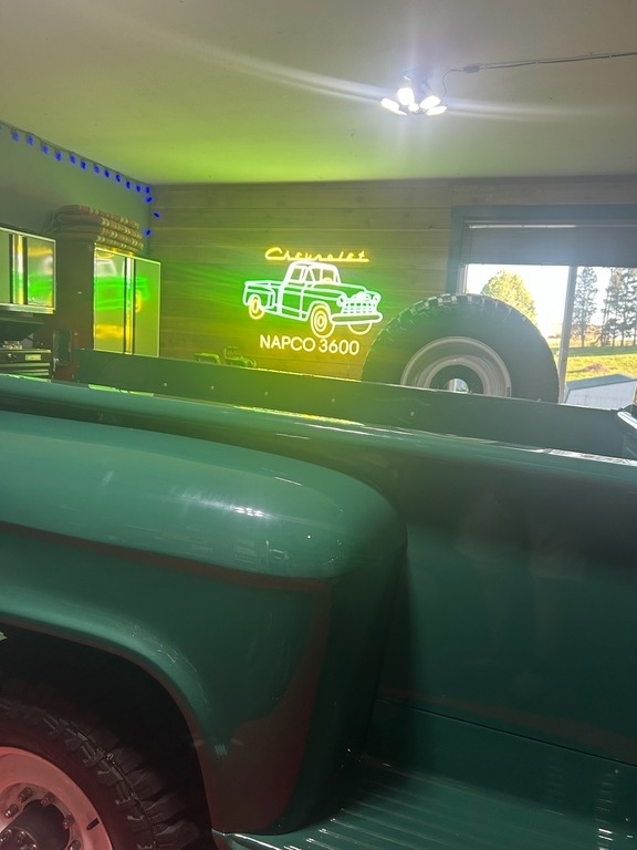 “This 1956 Chevrolet 3600 ¾ Ton NAPCO 4x4 Pickup is a rare and beautifully restored classic with a rich history. Originally a U.S. Forest Service truck, it features the original NAPCO Power Pak 4x4 system, making it an exceptional find. Purchased in 2017 in rough condition, it had minimal serious rust and has since undergone a meticulous restoration that took over six years and more than $100K in investment. The original 265 c.u. V8 engine was unrepairable and has been replaced with a Chevy 350 small block for improved performance. The Muncie transmission, transfer case, differentials, axles, and leaf springs (9 front, 10 rear) are all original, as are most of the badges. Many hardware components have been replaced with stainless steel for durability and longevity. The truck has a stunning new red oak bed kit with stainless steel strips, a completely rewired electrical system, new headers, and new glass all around, including the side view mirrors. It also features new weather stripping and fender welt, new chrome bumpers and grille, new headlight bezels, five new tires, and powder-coated steel wheels from GK Machine. The interior is clean and well-maintained, and while the heater isn’t currently installed, the complete unit is included and has been sandblasted and painted (though it may need a new core). This truck has been kept as period-correct as possible, with no power steering or disc brakes. The instrument cluster is original, though it could use an update. The paint and bodywork were professionally done by one of Portland's best restoration shops, with over $60K invested in that alone. The truck starts beautifully and sounds great, and it has even won two Best of Show awards this past summer. It has always been kept covered in a heated garage, and a high-quality cover is included, along with a number of extra parts. I am happy to answer any questions and provide receipts, ensuring transparency for any interested buyer. This is a truly special and stunning truck, ready to be enjoyed and admired for years to come! Custom made LED neon light included with sale! $2,000 value. See photo.”