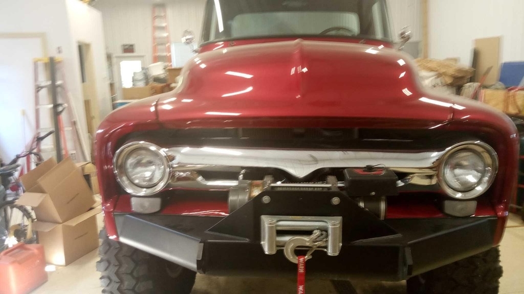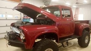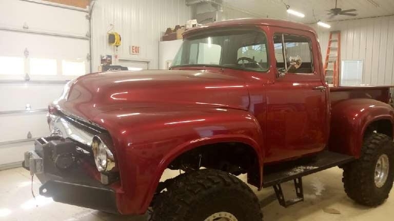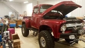 “This 1956 Ford F100 Pickup has just 50 miles on a flawless rotisserie restoration. The body is absolutely rust-free and many parts are brand new. There are also several new parts that come with the truck, including the hardware for the doors. It's a solid, sharp-looking classic that's almost complete; just needs a new interior and new wood in the bed to finish it off. Equipped with a 12,000lb winch, it's both functional and show-worthy. A rare opportunity to own a beautifully restored '56 F100 that's nearly finished and ready for your finishing touches.”
