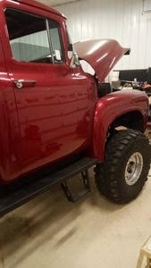 This F100 is powered by a 250 HP 350ci V8 engine paired with a 3-speed automatic transmission. It has only 50 miles since the restoration and is shown with a Wine Maroon exterior. This vehicle has been restored, well-maintained, and smoke-free.