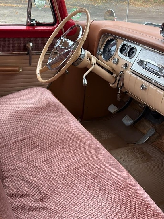 “For sale is my 1956 Plymouth Belvedere, affectionately nicknamed “Christine’s older sister.” This beautiful classic has been kept in heated storage and is in impressive condition for its age. I’m the second owner, and the car remains highly original throughout, showing the care it’s received over the years. This top-of-the-line Belvedere still wears its original chrome, carpet, floor mats, dash, taillights, and trunk pan with the original cardboard mat. It rides on Coker whitewall tires that perfectly complement its vintage style. The car has been repainted, and the body is solid with no rust. Mechanically, it just received a fresh tune-up, a new battery, new generator, and new brakes all around (pads, cylinder, springs all rebuilt/new). Overall it runs and drives well. A few minor items need some TLC — the parking brake could use adjustment, the headliner has water stains and a small hole (a replacement headliner is included), and the driver’s door key is missing, so that door currently doesn’t open. Overall, this Belvedere is a beautiful survivor that’s been well preserved and cared for — a great example of Plymouth’s elegant mid-’50s design. Perfect for a weekend cruiser or vintage car show.”