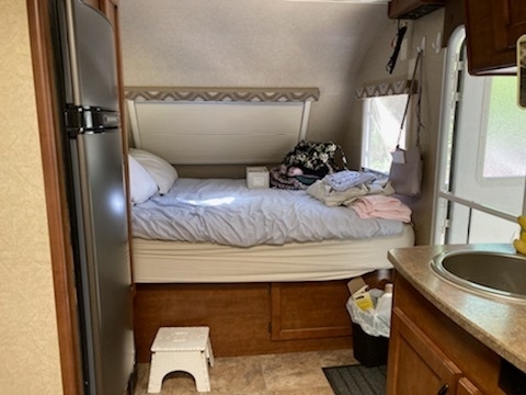 The Lance 1575 is nearly 20’ long and comes equipped with 1 slide out, 1 awning, and 1 A/C unit. 4 people are able to sleep comfortably in the unit.