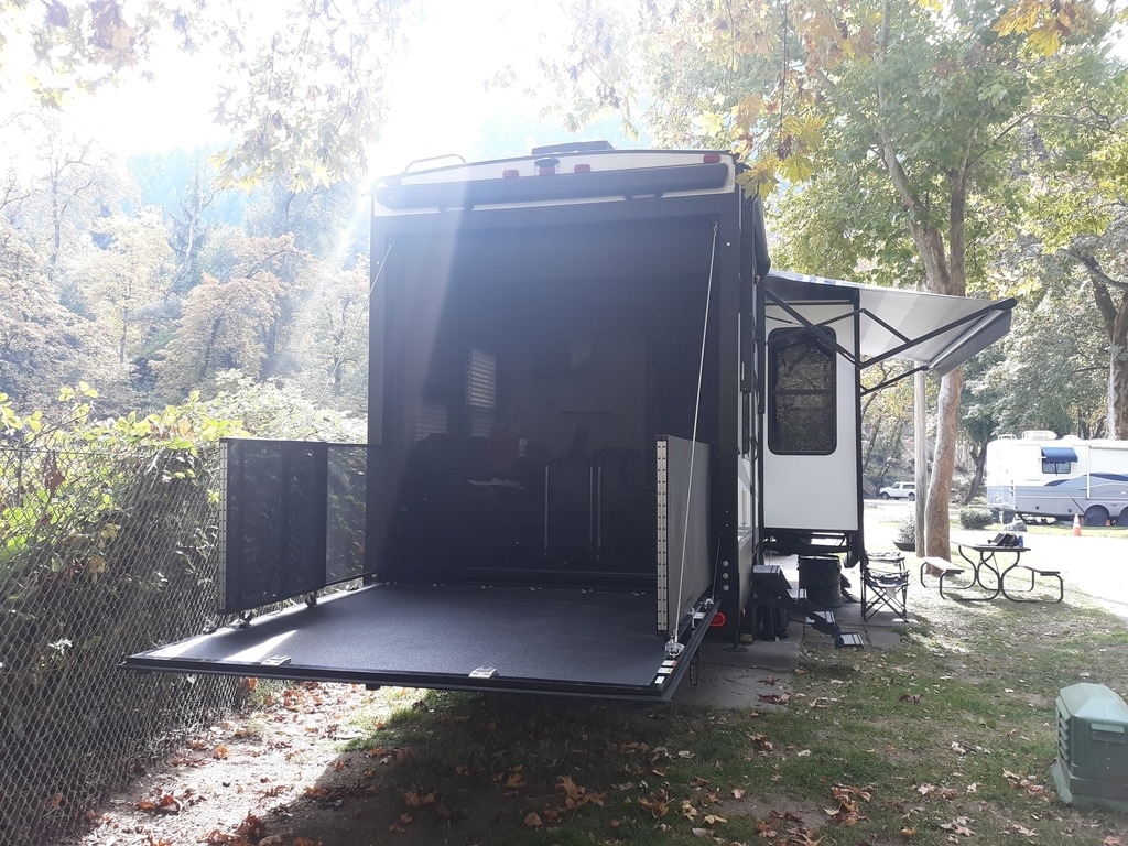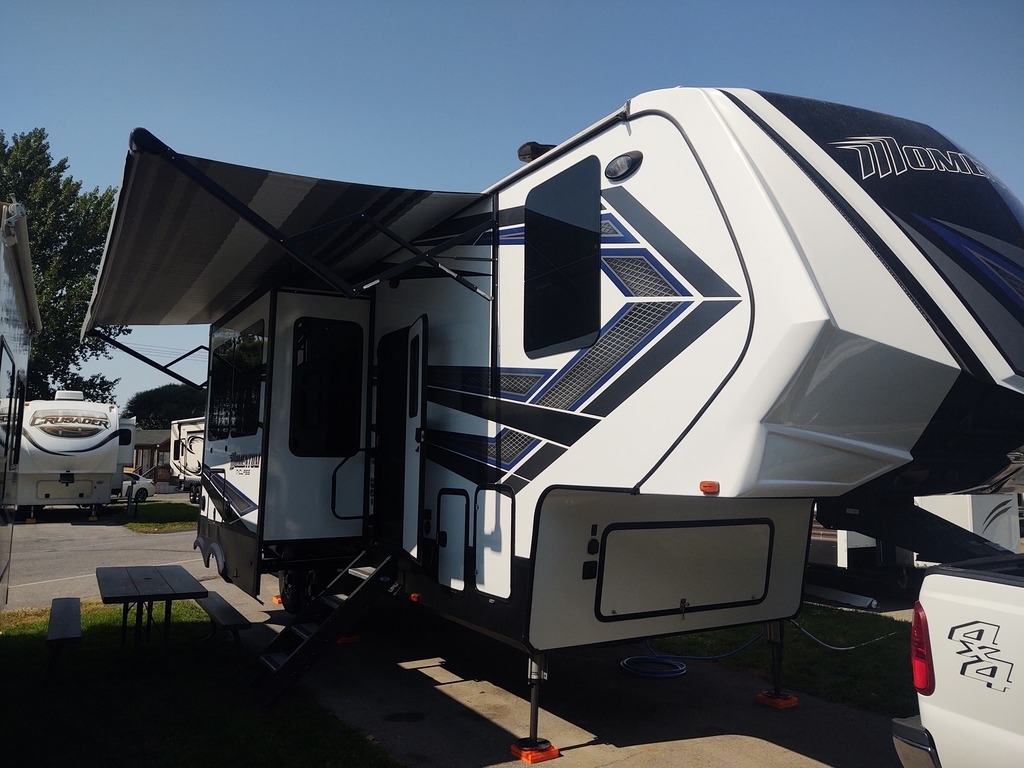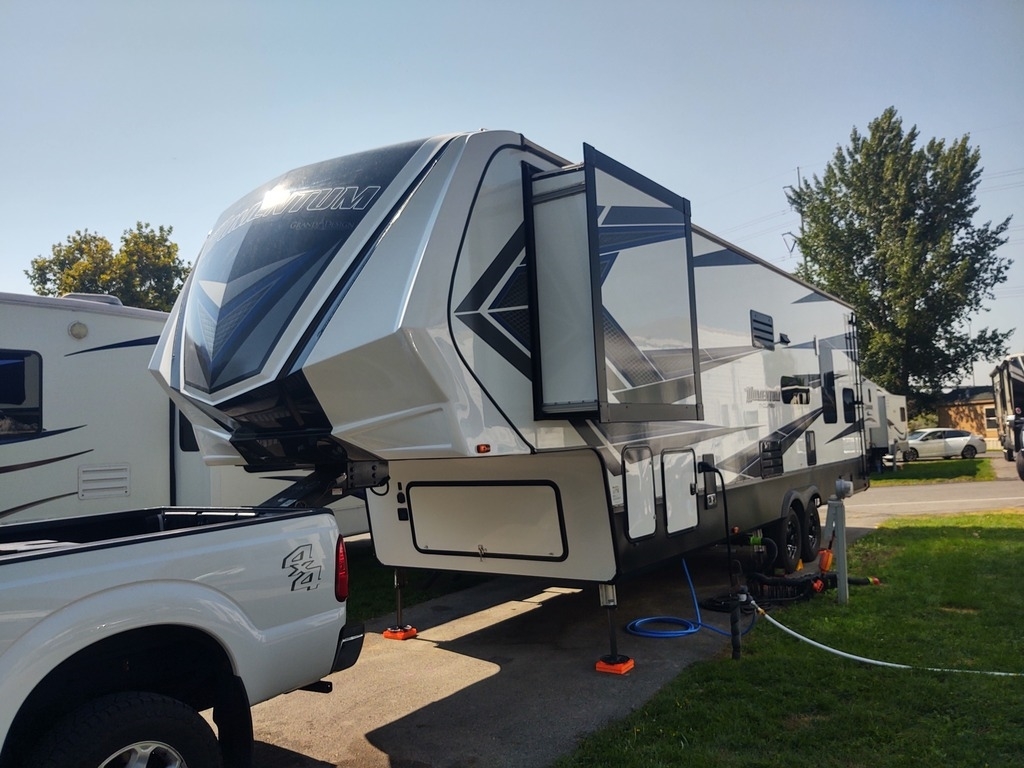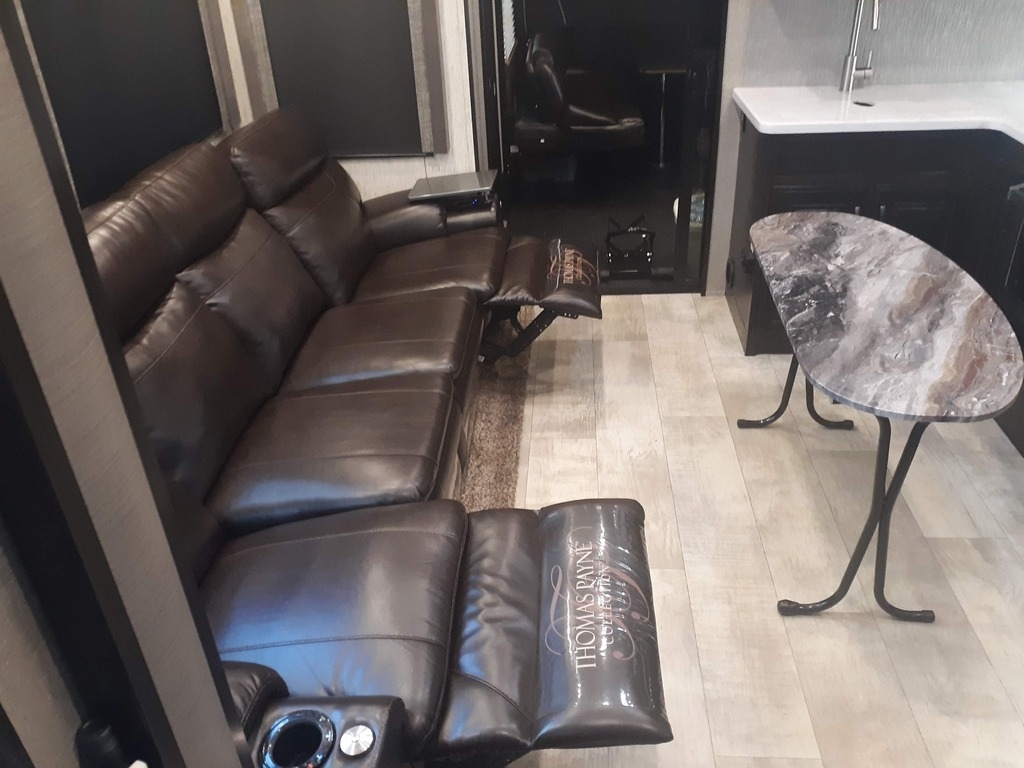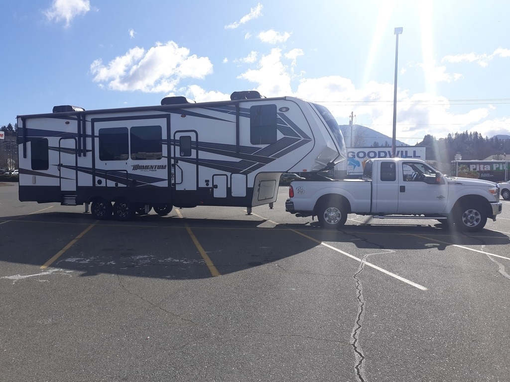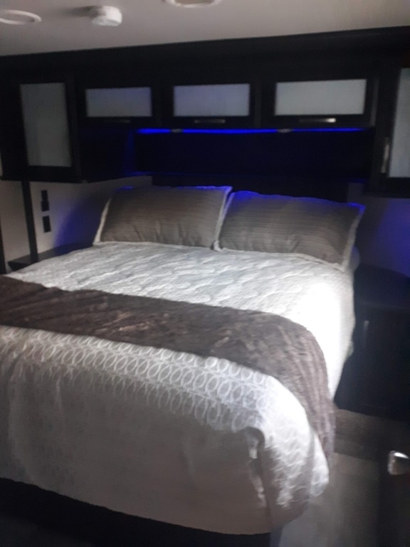 The 2019 Grand Design Momentum is 35.92 feet long with a 120 inch long Cargo Area with a 40 Gallon Auxiliary Fuel Tank. Comes equipped with an Onan 4kW Gasoline Generator, 2 Slide Outs, 3 Awnings, and 3 A/C Units. 7 people are able to sleep comfortably in this unit. This is a small one pet-friendly/non-smoking RV and there have not been any accidents or water damage.