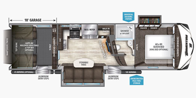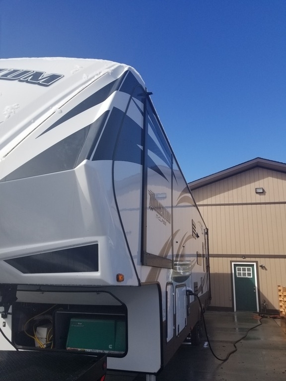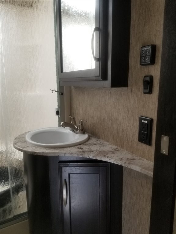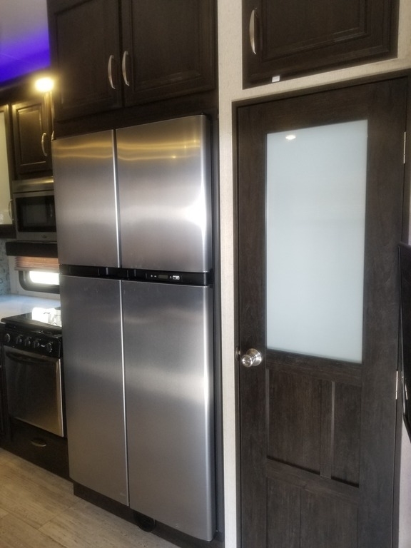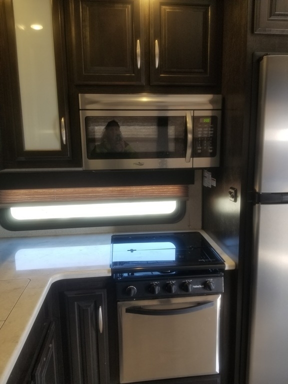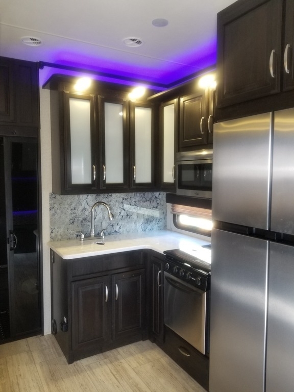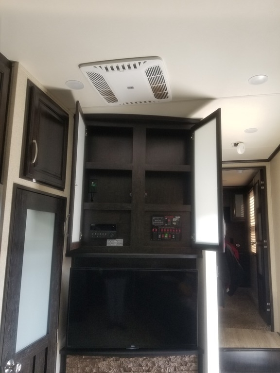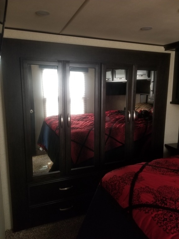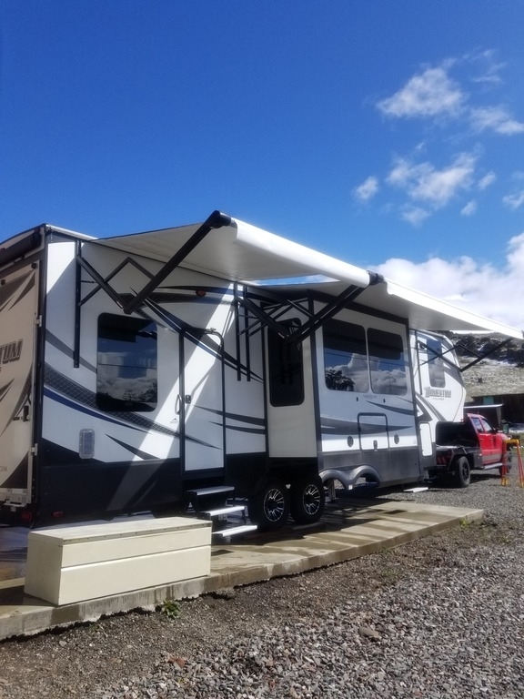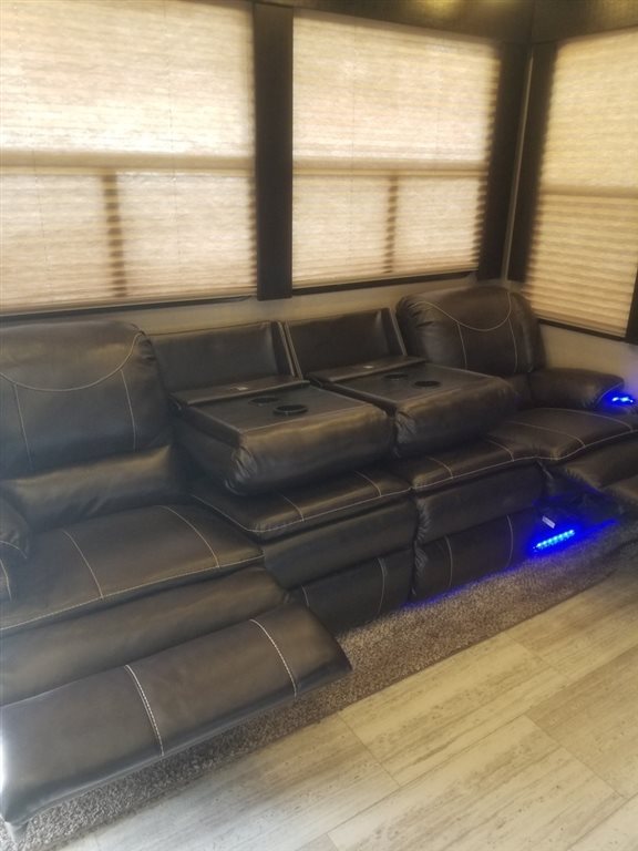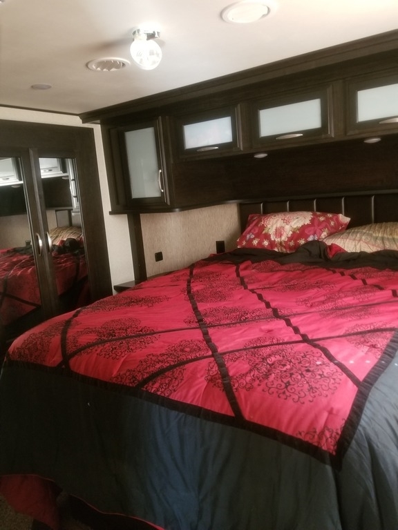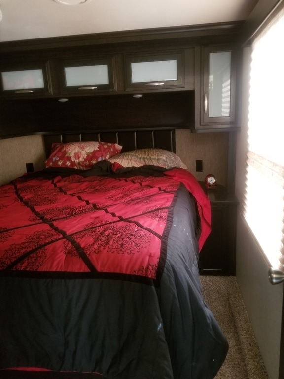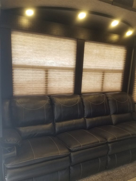 This 2017 Grand Design has an overall length of 36 feet and comes equipped with an Onan 5.5KW Gas Generator, 2 Slide Outs, 3 Awnings, 2 A/C units and plenty of room to sleep 7.