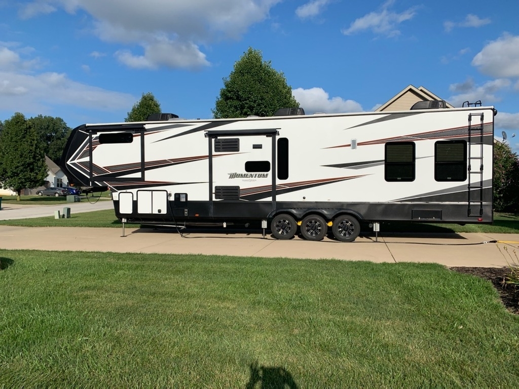 This 2019 Grand Design Momentum has an Overall Length of 43 Feet and Comes Equipped with 3 Slide Outs, 4 LED Lit Awnings, 3 A/C Units, and has Plenty of Room to Sleep 6. This is a Non-Pet/Non-Smoking Toy Hauler and there has Not Been Any Accidents or Water Damage.