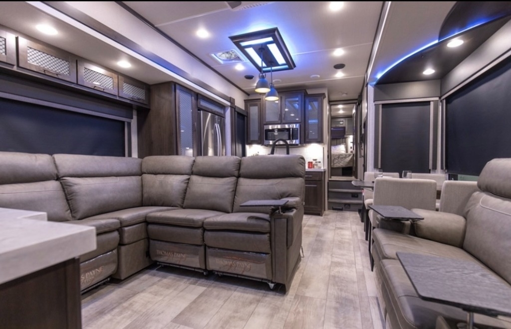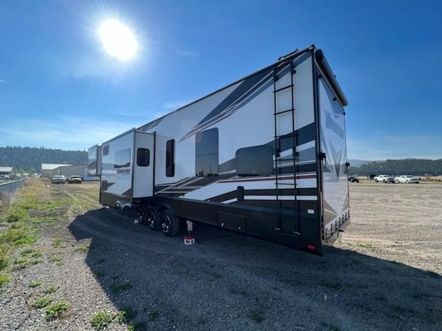 This 2022 Grand Design has an overall length of 43’ 8” and Comes Equipped with 3 Slide Outs, 4 Awnings, 3 A/C Units, 1.5 Bathrooms, and Room to Sleep 8.