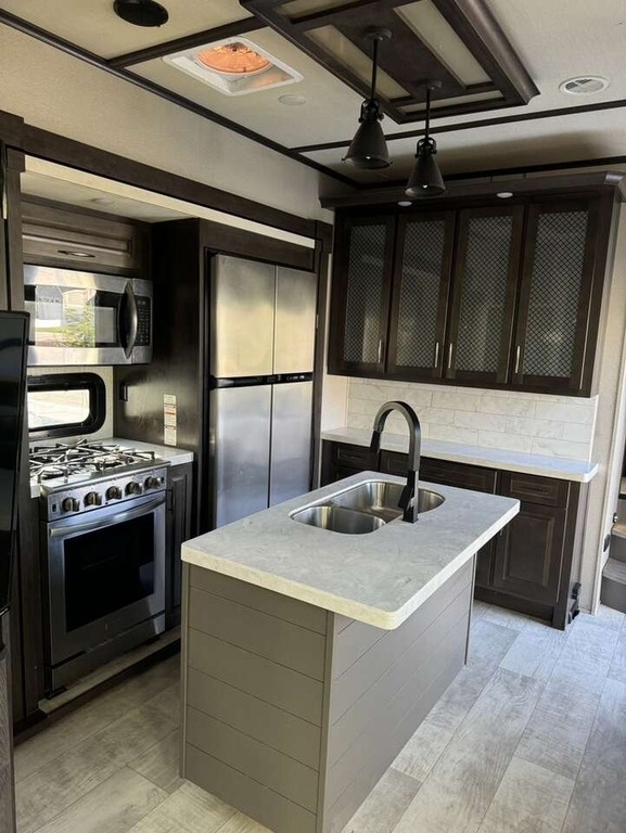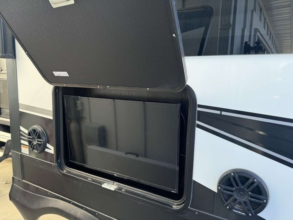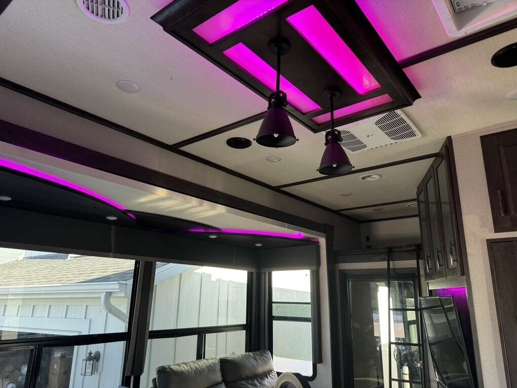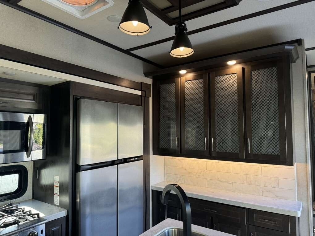 length of 43’ 8” and Comes Equipped with 3 Slide Outs, 4 Power Awnings, 3 A/C