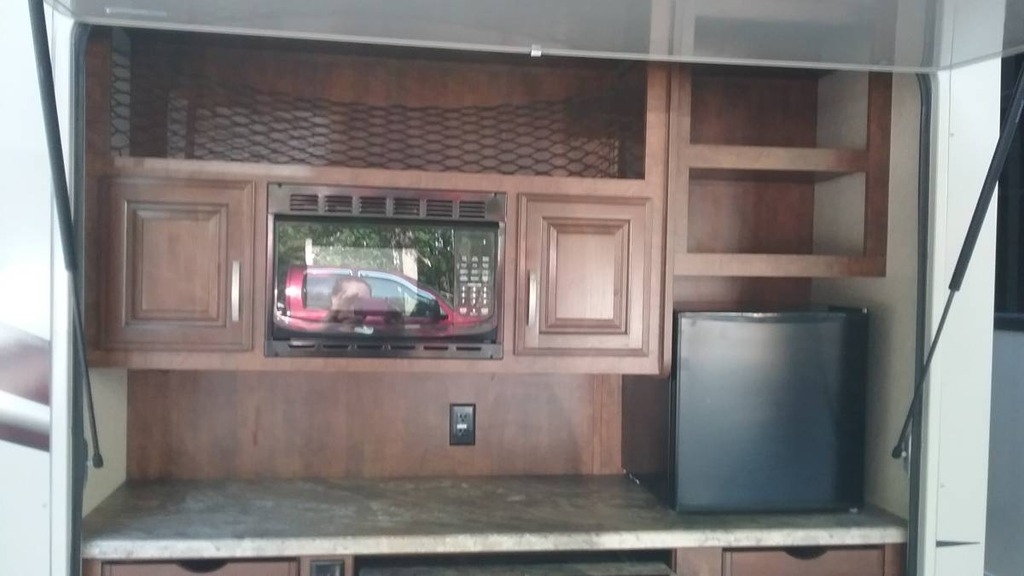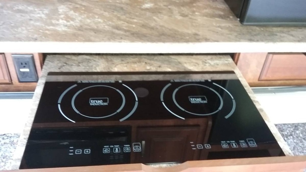 Outside Kitchen- Microwave, 2-Burner Cooktop, Mini Fridge