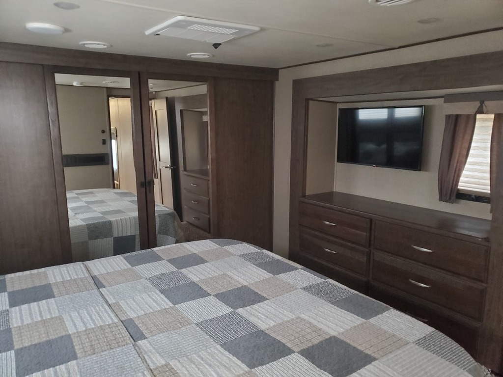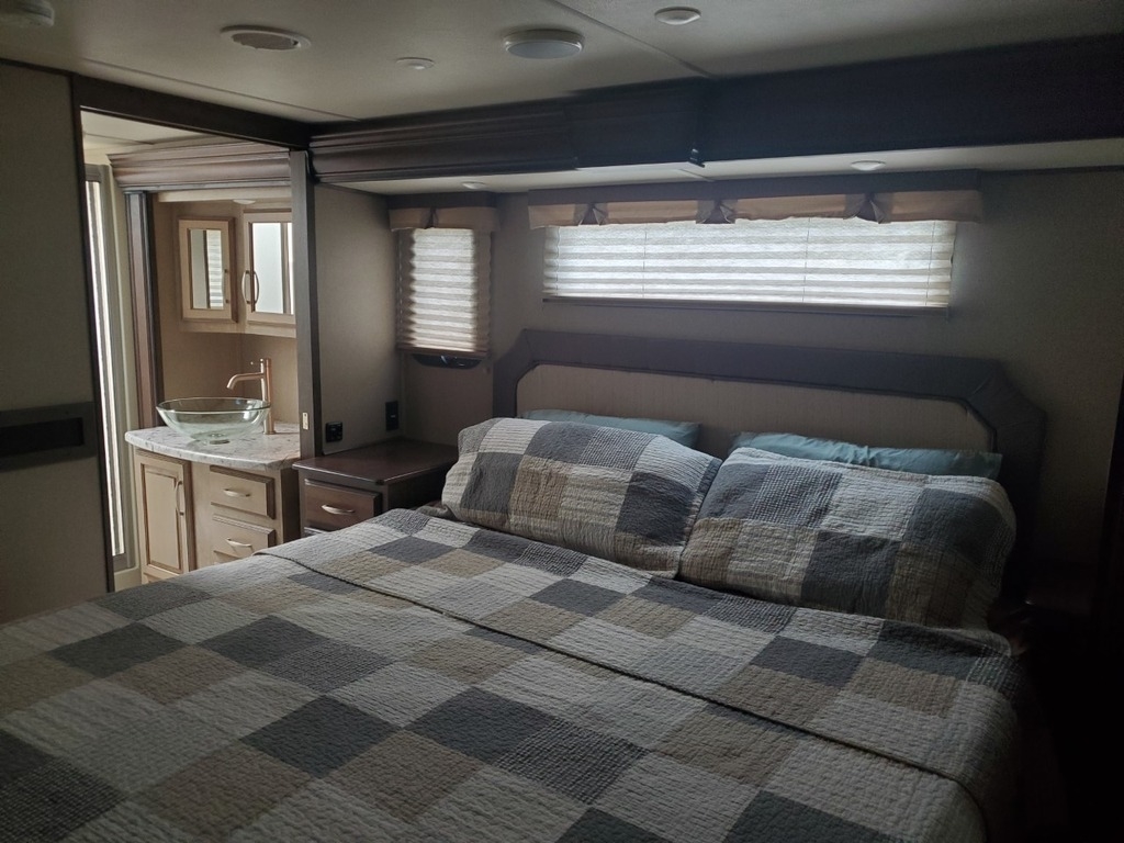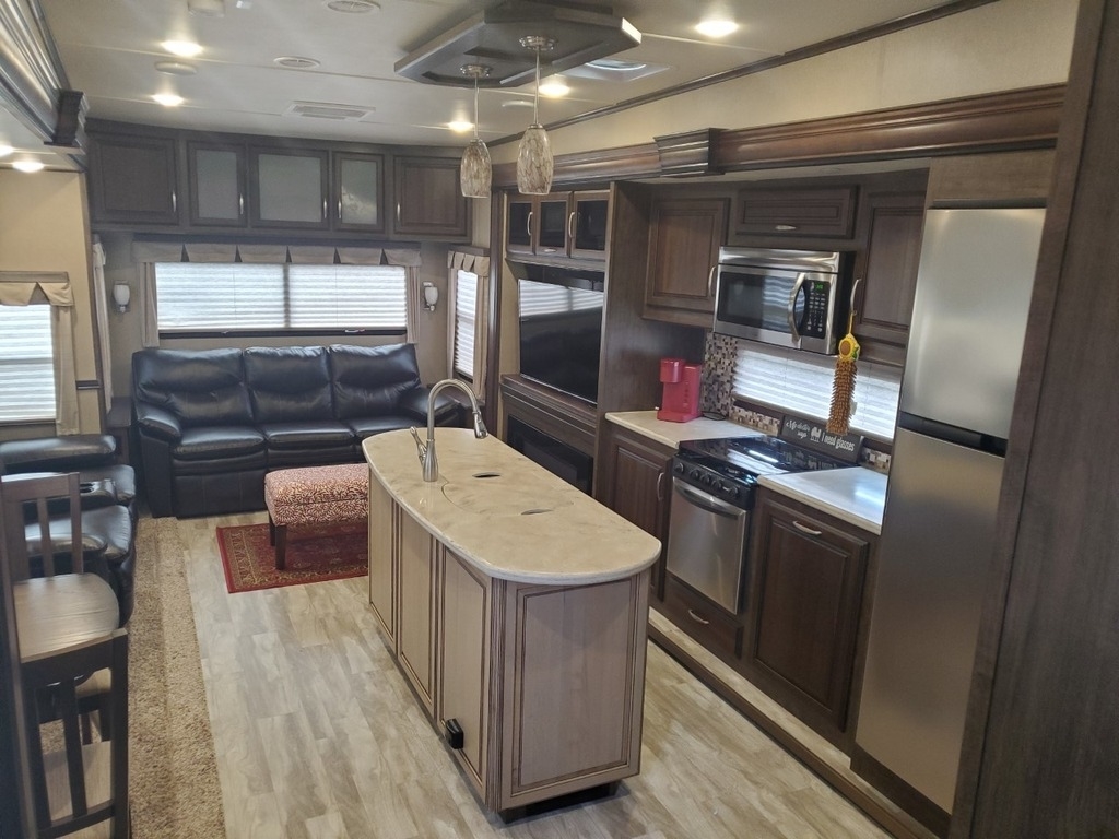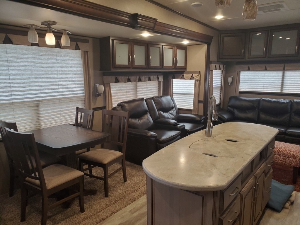 This 2016 Grand Design Solitude has an overall length of 38 feet coupled with 4 slide outs and has plenty of room to sleep 4. This is a non-smoking, pet friendly RV and there have not been any accidents or water damage.