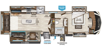 This 2019 Solitude has an Overall Length of 41ft and Comes Equipped with a 5500 Generator, 4