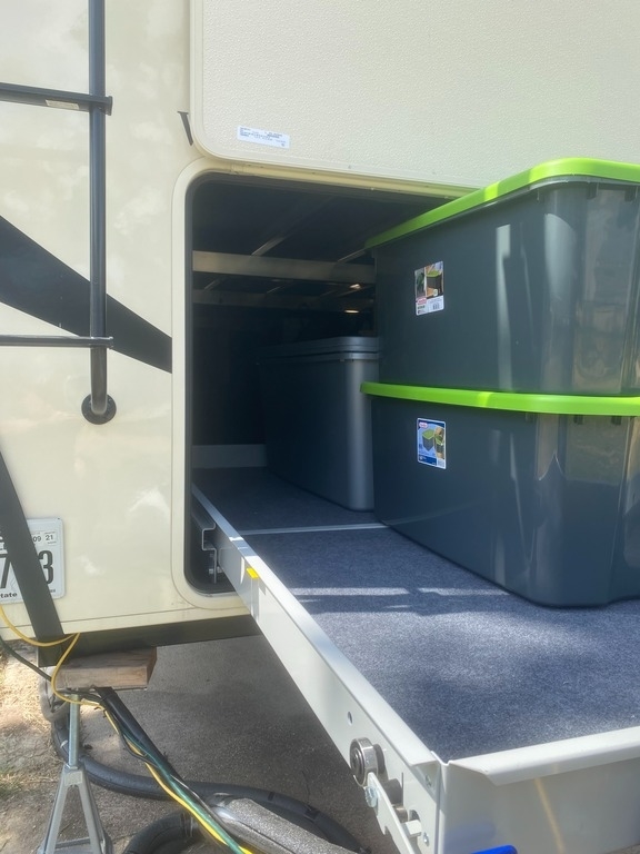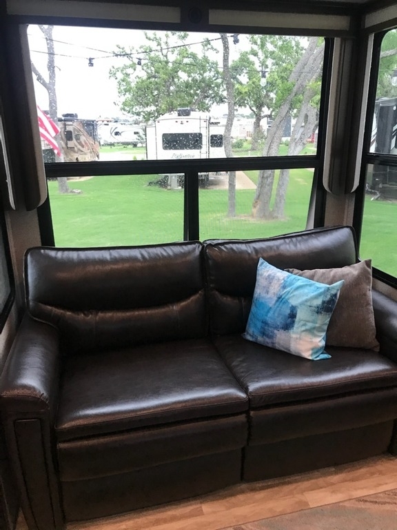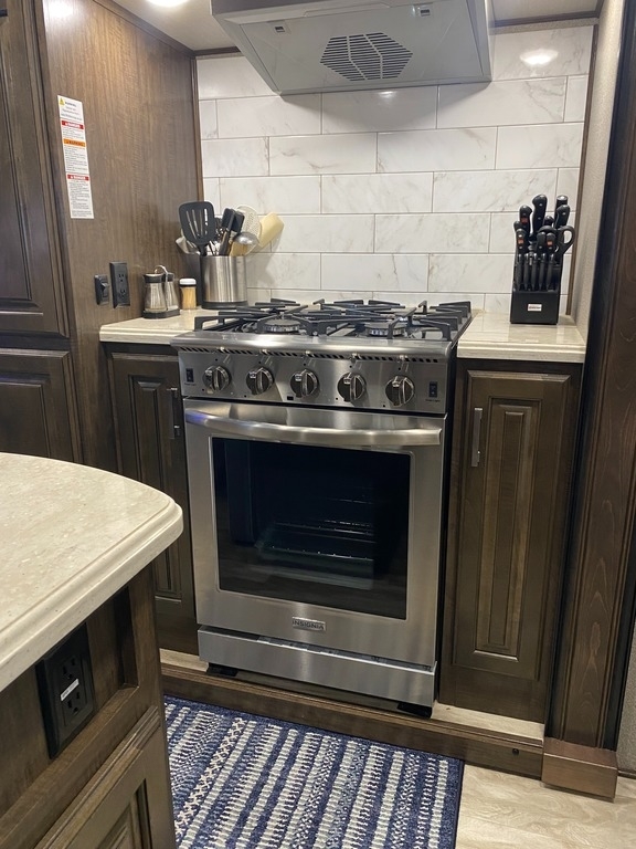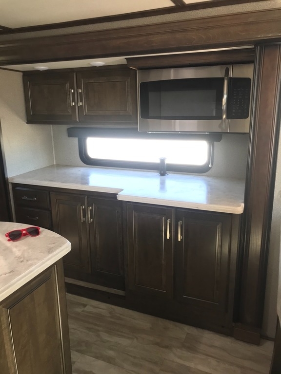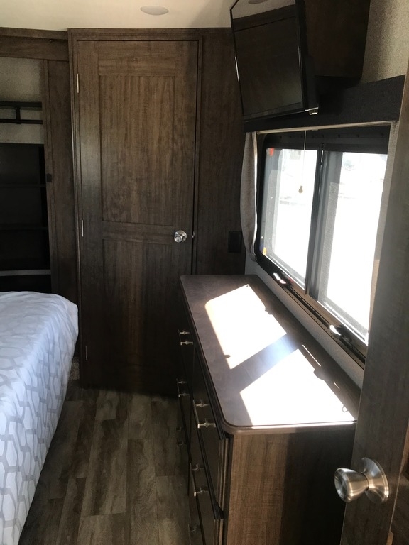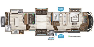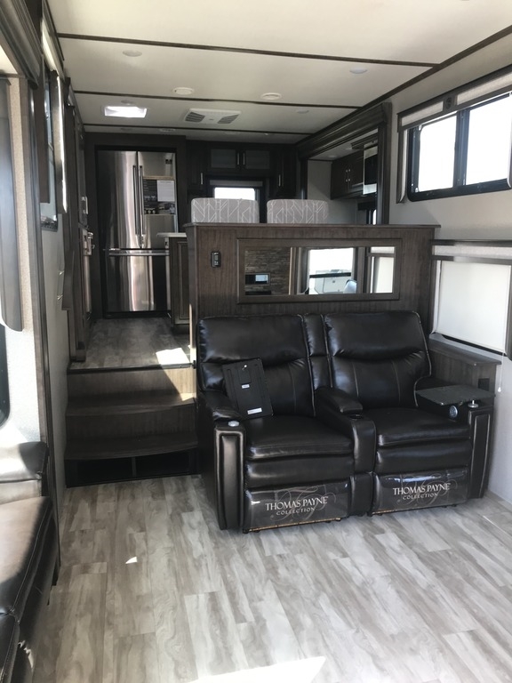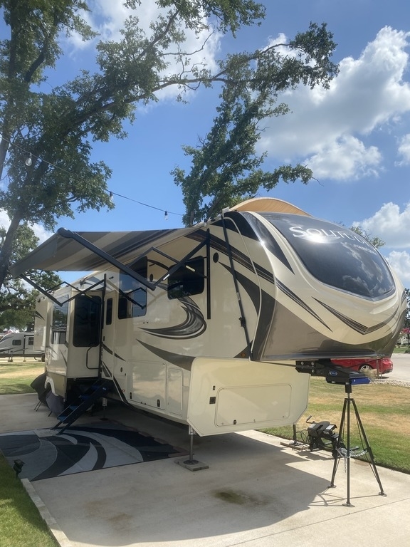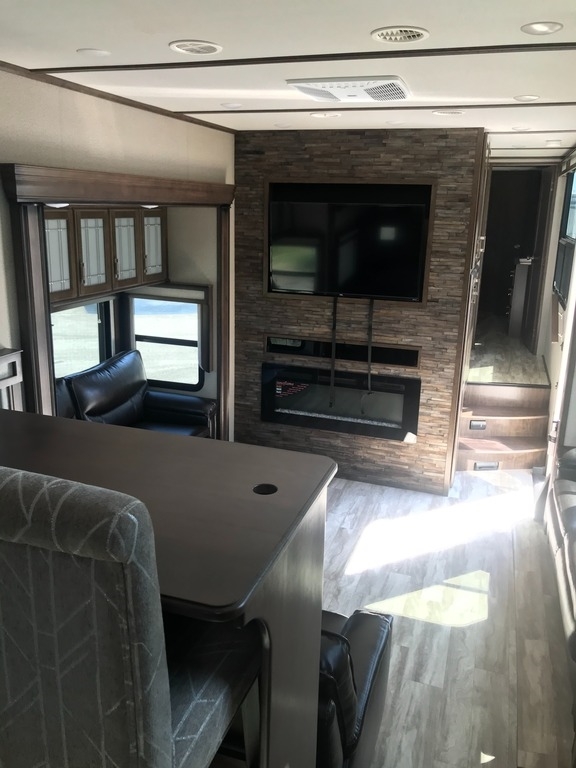 This 2021 Grand Design has an overall length of 41 feet and comes equipped with 5 Slide Outs, 1 Awning, 3 A/C units and plenty of room to sleep 6.