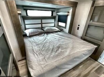 This Grand Design has an overall length of 41.42 feet and comes equipped with 5 power retractable slide-outs, 2 power retractable awnings, a generator, solar panels, and plenty of room to sleep 6. This unit has been well-maintained.