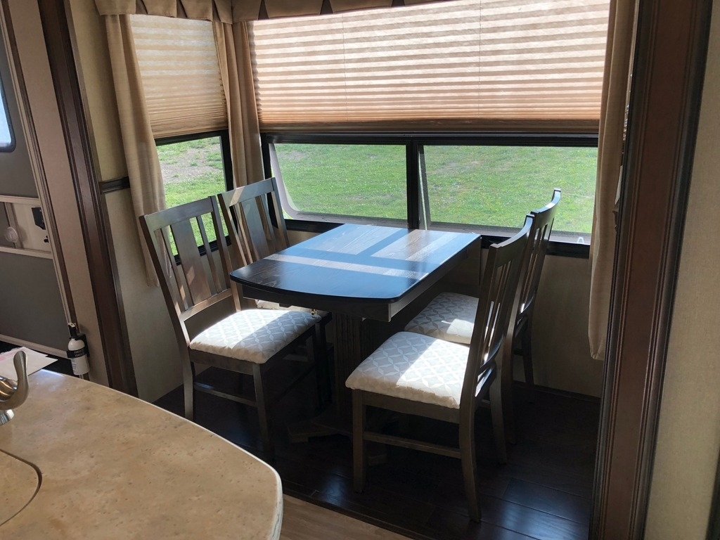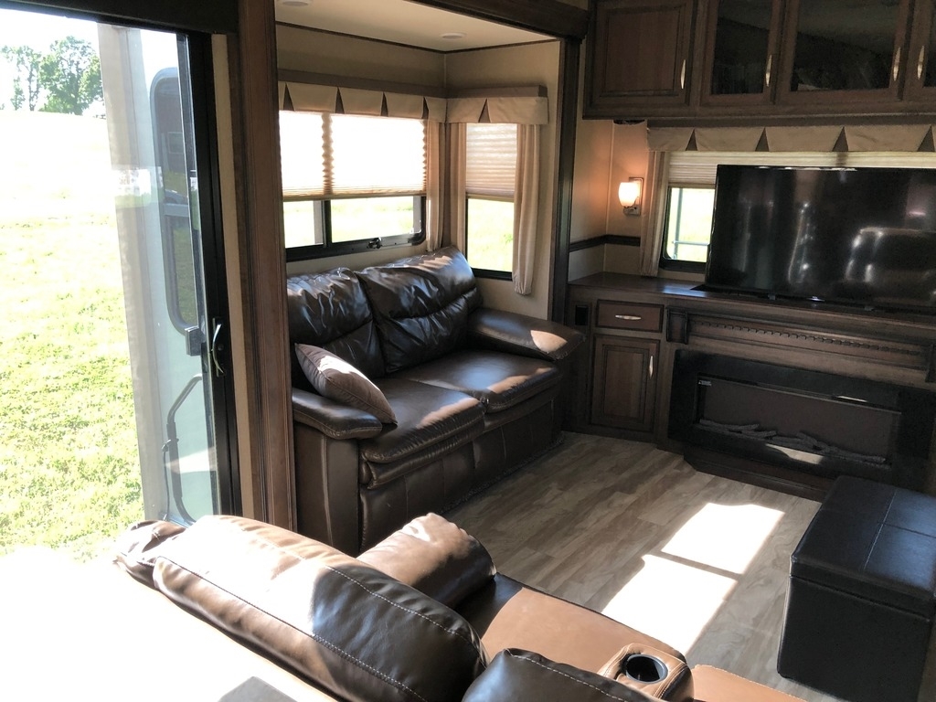 This 2016 Grand Design has an overall length of 41 feet and comes equipped with 5 Slide Outs, 2 Powered Awnings, 2 A/C units and plenty of room to sleep 6.
