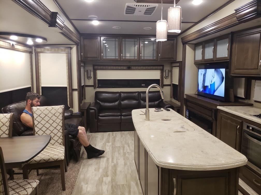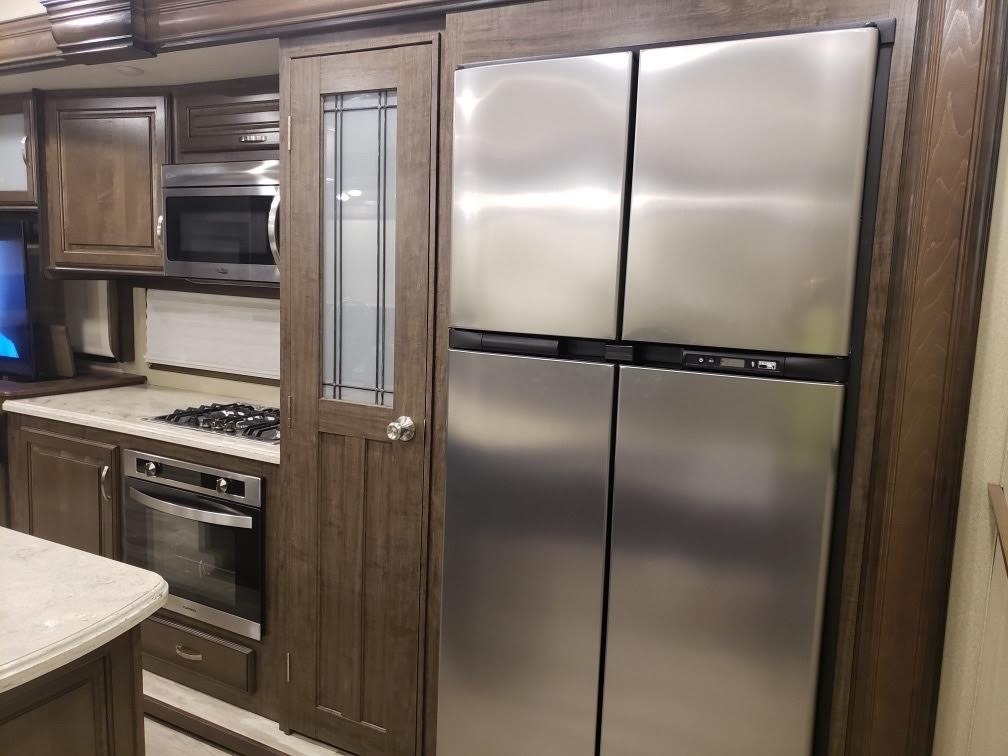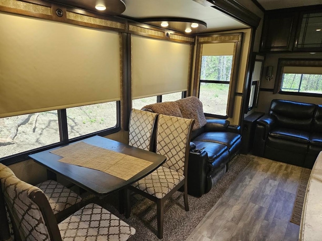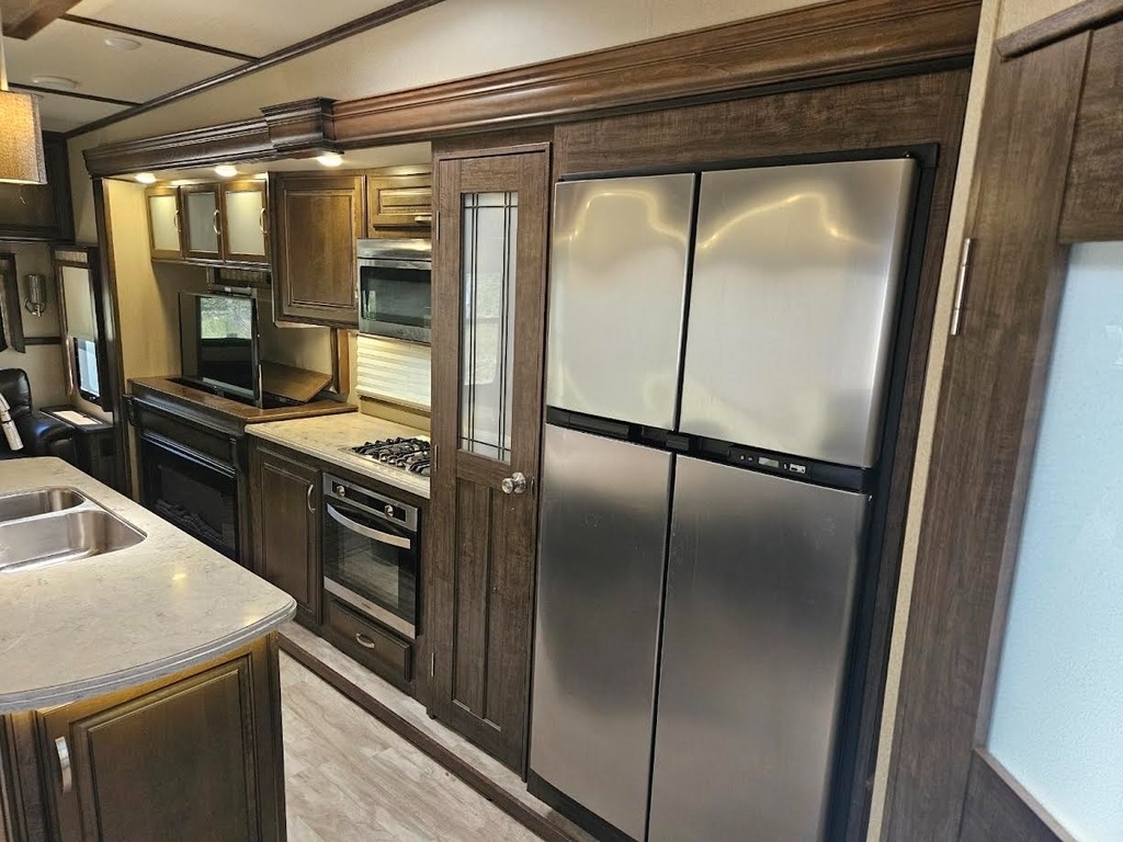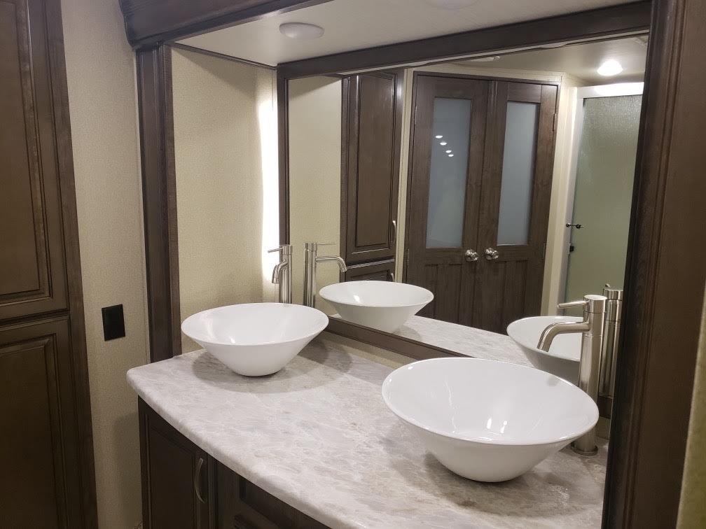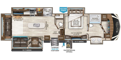 equipped with 4 power retractable slide-outs, 2 power retractable awnings, 1½ baths,