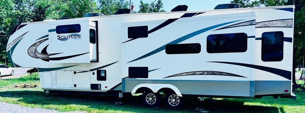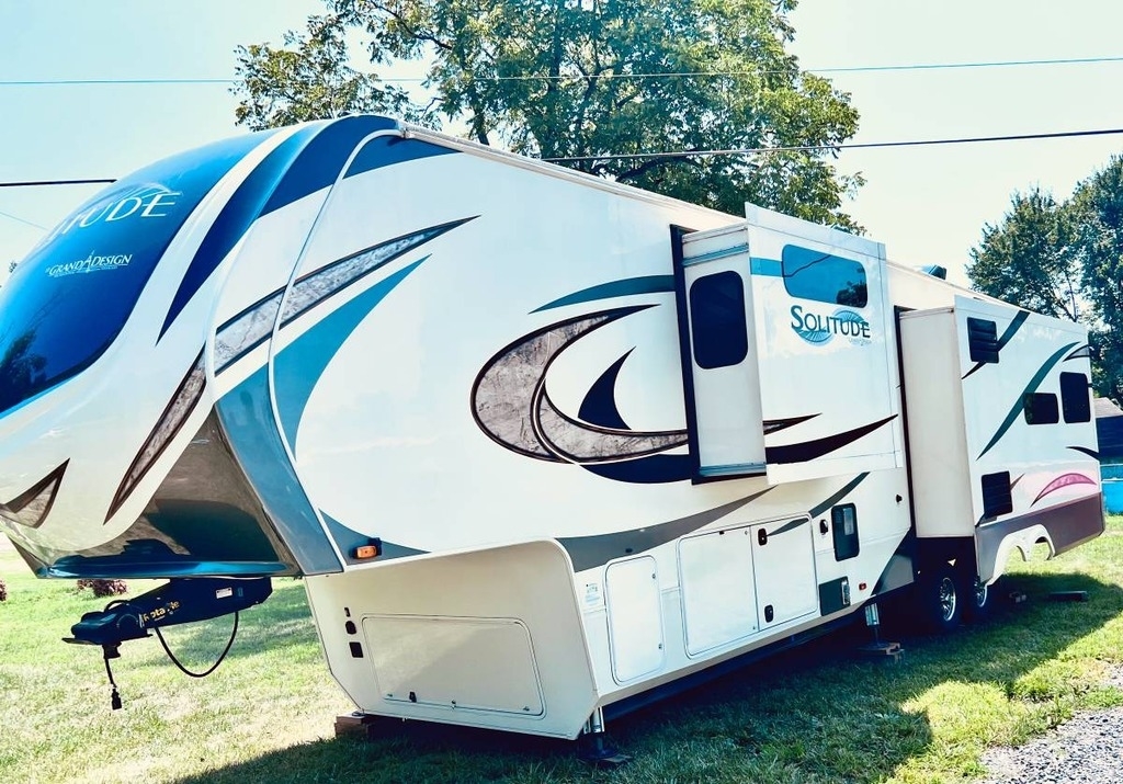 This Grand Design Solitude with Arctic All Season Package has an overall length of 41.33 feet and comes equipped with 4 power retractable slide-outs, 2 A/C units, and plenty of room to sleep 4. This unit has been well-maintained.