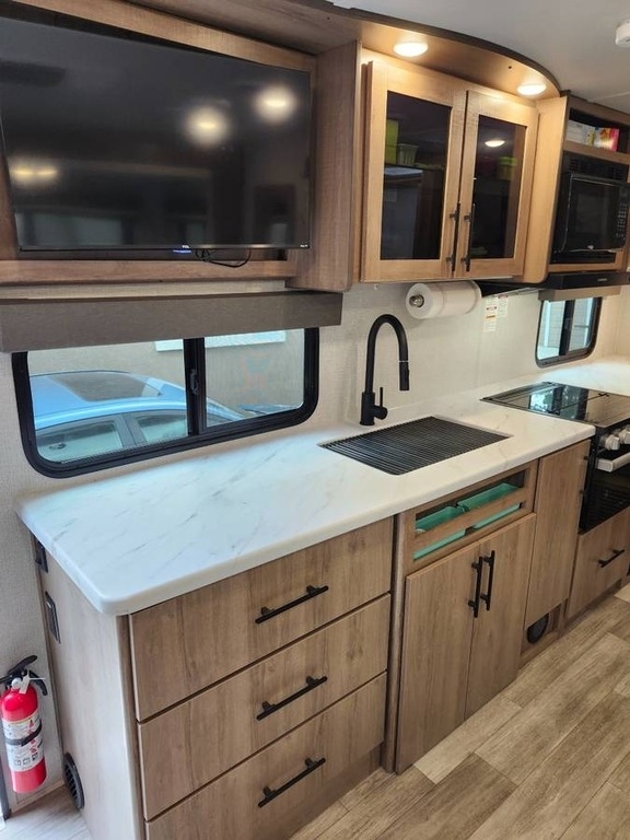 This Grand Design travel trailer has an overall length of 22 feet and comes equipped with 1 power retractable slide-out, 1 power retractable awning, 1 AC unit, and plenty of room to sleep 2. This unit has been well-maintained.