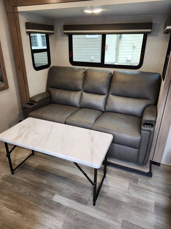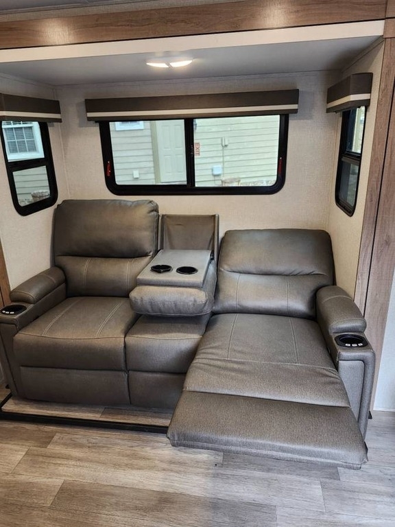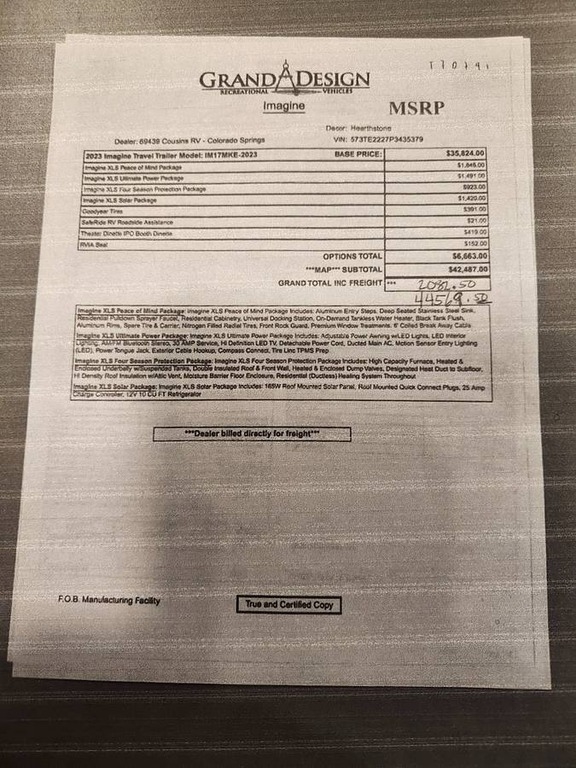 Options include Peace of mind ($1845); Ultimate Power ($1491); XLS 4 season package ($923); XLS solar package ($1420); Upgraded tires to Goodyear ($391); Theater Dinette IPO booth package ($419). Rear trailer wi-fi Bluetooth camera. Pictured stabilizers hitch available for additional price (pictured). MSRP was $44,569.50 (pictured). We very much enjoyed this trailer but have to sell it for personal reasons.”