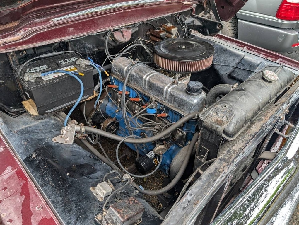 This Ford is powered by a 223ci inline-six engine paired with a 4-speed manual transmission. It is shown with a Plum Metallic exterior and a matching plum interior. This vehicle has been garage-kept and well-maintained.