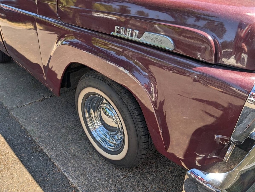 “This 1957 Ford F-100 Pickup is a dang solid truck that runs and drives well and makes a great driver-quality classic. It’s powered by the reliable 223 straight-6 paired with a 4-speed manual transmission with granny gear, making it both fun to drive and very usable. Performance upgrades include a Clifford intake manifold, 2-barrel carburetor, and split header with dual glass packs, giving it a great sound and improved drivability. Recent maintenance and upgrades include new tires and wheels, a new generator, a new battery, a new belt, and several other small new parts. The truck features a short bed wide-box with the desirable big back window. The interior is nice, the glass is in great condition, and the grille and front bumper present well. The paint is older (likely from the 1990s) and not perfect but still looks good, there are some tiny bubbles, and it would shine up even better with a fresh wax. It comes with a brand-new, complete American Autowire harness (approximately $800 value). Most of the remaining electrical work is related to the brake lights and turn signals. Great project truck with major wiring already included. There is minor rust in the step areas underneath that does not affect function, along with a few small bubbles at the bottom of the passenger door—nothing unusual for a driver-quality truck of this age. The rear bumper shows some rust, and the tailgate has a few old, painted-over dings, but overall, it presents very well. This is a clean-title F-100 that’s honest, solid, and ready to be enjoyed as-is. A great opportunity to own a classic Ford pickup that you can drive and have fun with right away.”