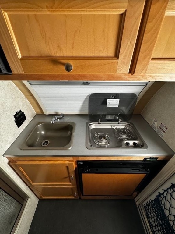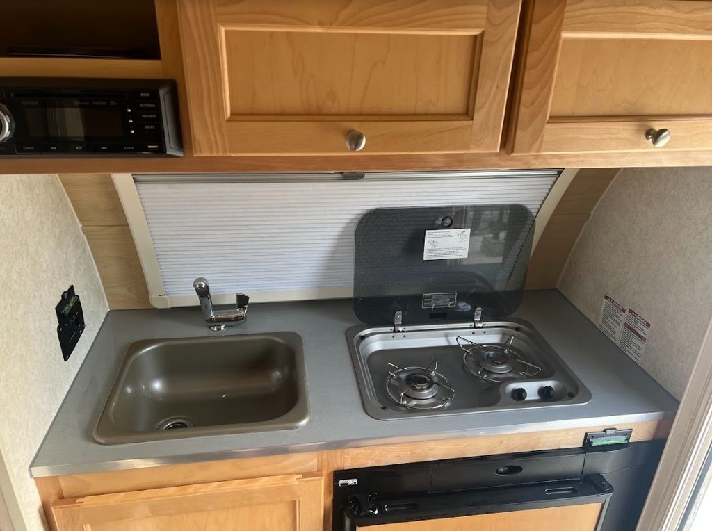 with 1 attachable patio awning, 1 A/C unit, and plenty of room to sleep 2. This