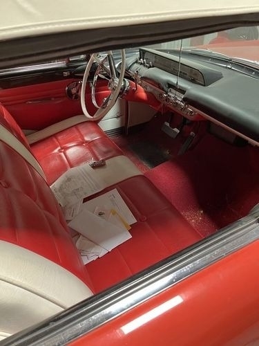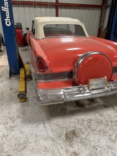 This All Original Numbers Matching 1957 Lincoln Premiere is powered by a 368ci 6.0L V8 Gas Engine, paired with a 3-Speed  Turbodrive Automatic Transmission. Shown in a Red Exterior with a Red/White Leather Interior. This Convertible has been Garage Kept and Non-Smoking.