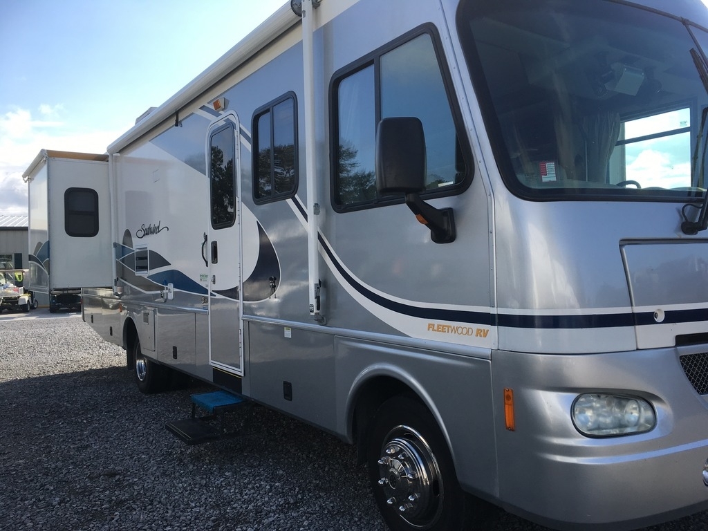 This 2004 Fleetwood Southwind is powered by a Vortec 8.1 litre Gas Engine combined with an 6-speed automatic transmission and a Chevy Chassis. The overall length is 32 feet and comes equipped with an 5.5 Kw gas generator, has 2 Slide Outs and sleeps 6. This is a non-pet/non-smoking RV and there has not been any accidents or water damage.