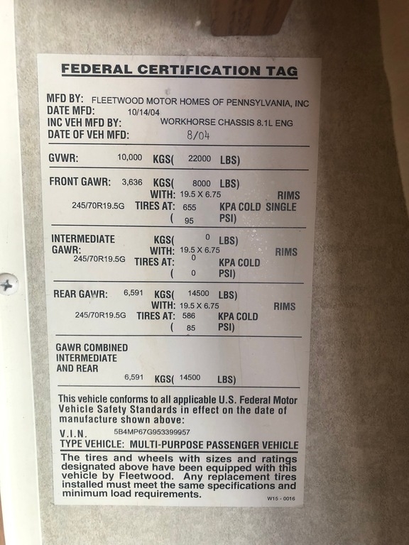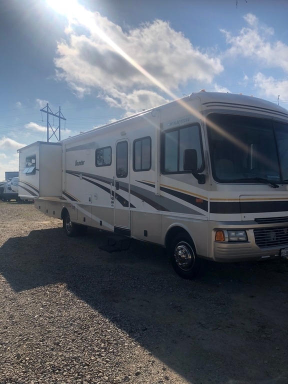 This 2005 Fleetwood Bounder is powered by a 8.1L Gasoline Engine combined with a 5-speed Automatic Transmission on a Workhorse Chassis, with 29,000 Miles. The overall length is 35 feet and comes equipped with an Onan 5500 Gasoline Generator, 2 Slide Outs, 3 Awnings 2 A/C units and plenty of room to sleep 6.