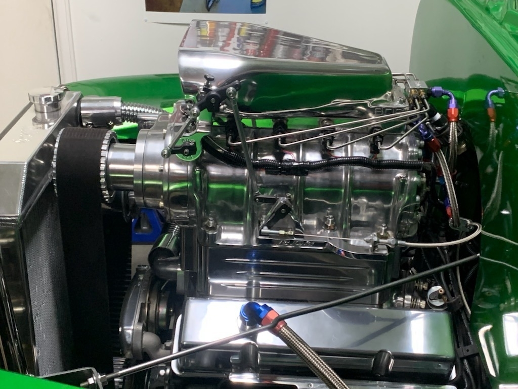 Chevy Pro Street is Powered By a 355ci Sbc. 671 Blower with BDS EFI Bug Catcher