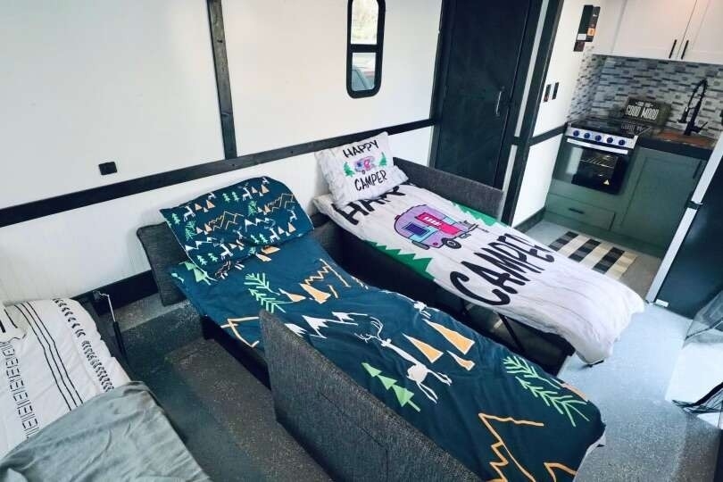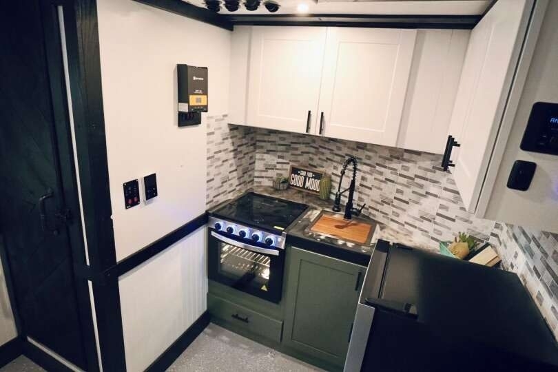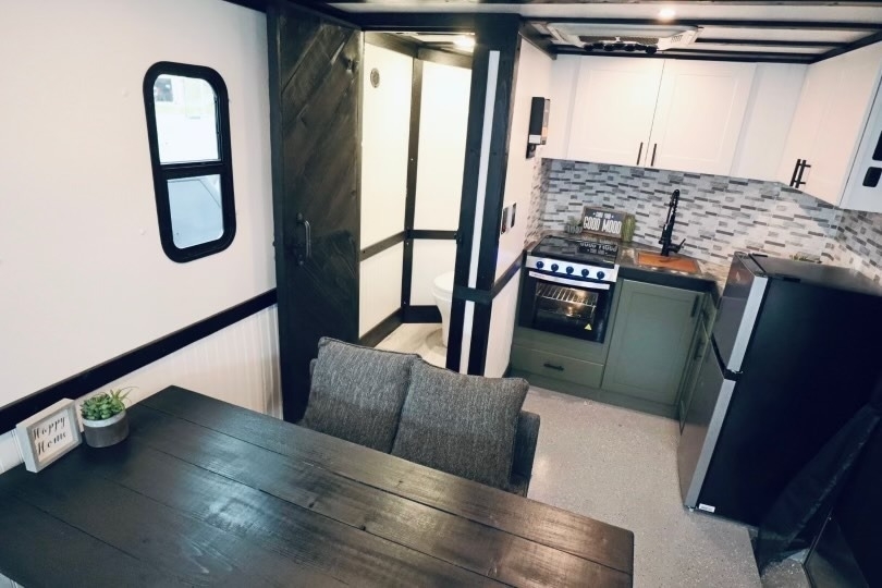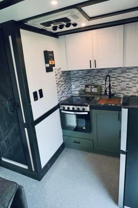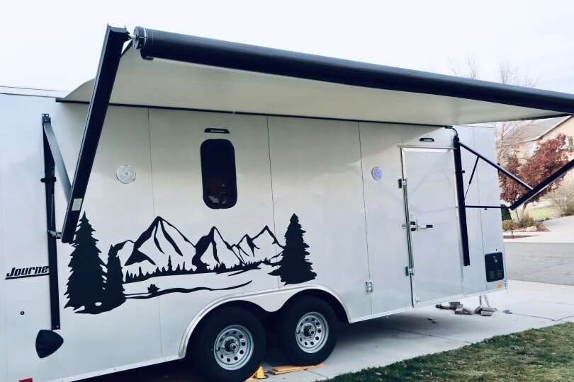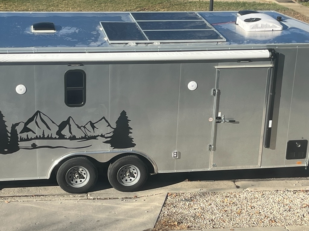 This custom built American Journey toy hauler has an overall length of 24 feet and comes equipped with 1 power patio awning, 1 A/C unit, and plenty of room to sleep 4. This custom toy hauler has never been used and is perfect for off-grid exploring and overall traveling. With the 800 total watt solar system (4x200 watt panels) added and light enough the family SUV can pull it, you will have amenities bigger than other toy haulers!