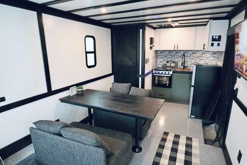 “One-of-a-kind, completely customized toy hauler. Designed to maximize cargo space and include the amenities of much bigger toy haulers. Light enough that even the family SUV can pull it, no need for a heavy-duty truck. This is a must see!”