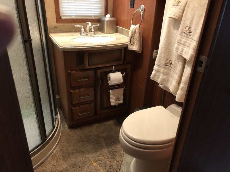 carpets, window coverings, toilet, etc. New Tires and Brakes in 2018. Wheel Bearings packed in 2018 also. This trailer
