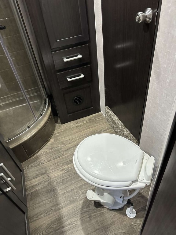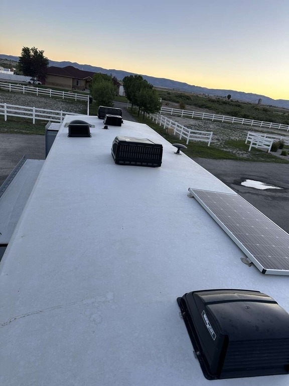 lights, an exterior shower, and a retractable roof antenna. Holding tank