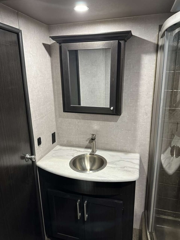 a GVWR of 14,000 lbs and aluminum wheels, this toy hauler ensures stability and