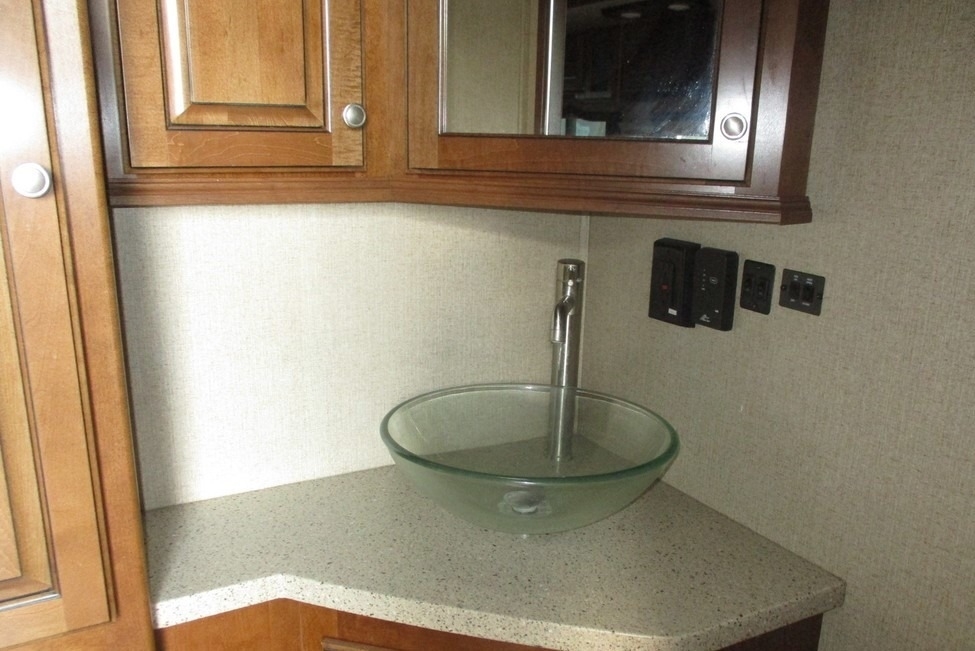 Clear Tempered Round Vessel Sink (both bathrooms)