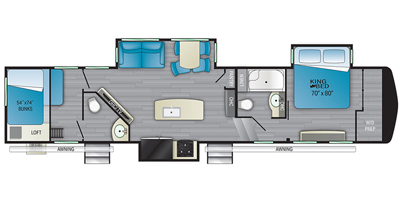 slide-outs, 2 power retractable awnings, 2 A/C units, 1½ baths, a bunkhouse, a