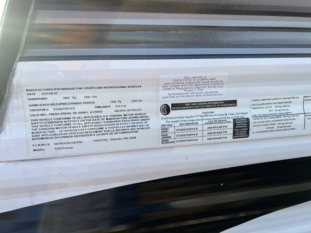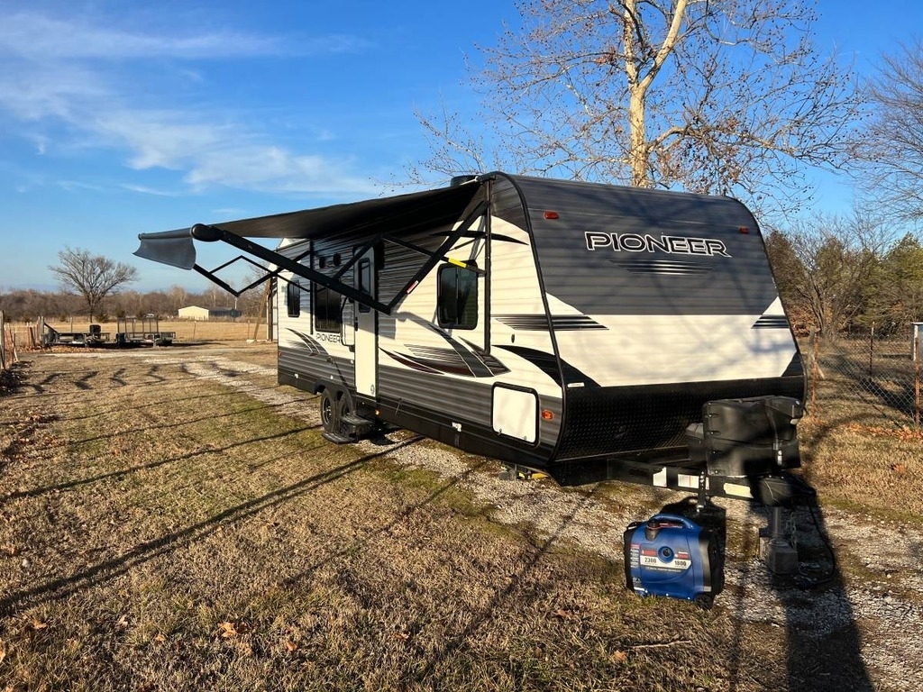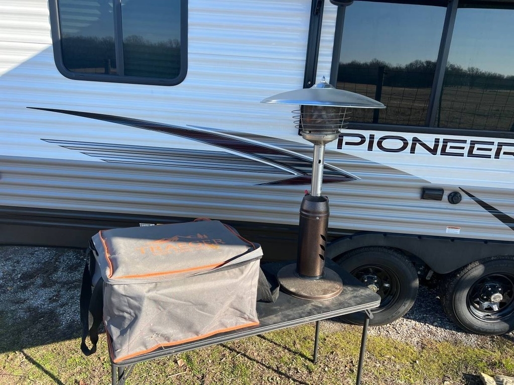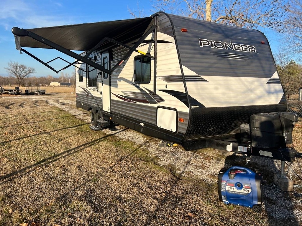 This 2020 Heartland Pioneer has Plenty of room to live comfortably and transport your utility vehicles with an overall length of 30.67’and 27 Feet of living space with Room to Sleep 4 People. Has 1 Slide Out,1 14-foot Awning (Power W/ LED Light) Equipped with a 16ft Garage, 2 Generators That Work Parallel Capable of Powering Everything Including the Air Conditioner. Room to Carry 4 Side-by-Side Utility Vehicles. The Tires Are Like New With 95% Tire Tread.