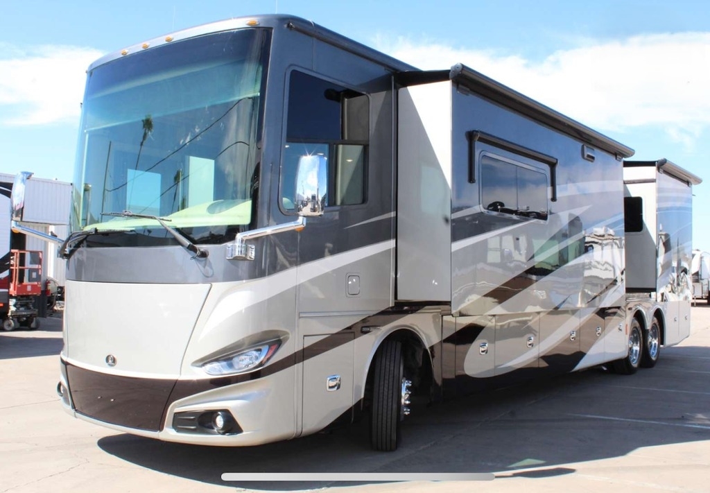 This Phaeton is powered by an 8.9L I6 diesel engine and a 6-speed automatic transmission with 43,000 miles. The overall length is 45 feet and comes equipped with 4 power-retractable slide-outs, 1 power awning, 3 A/C units, a diesel generator, 1½ baths, an outdoor entertainment system, and room to sleep up to 4. This unit has been well-maintained.