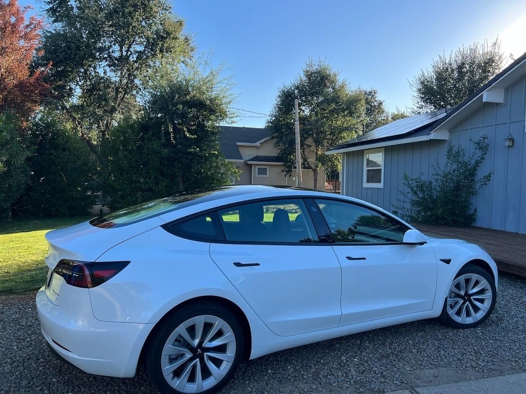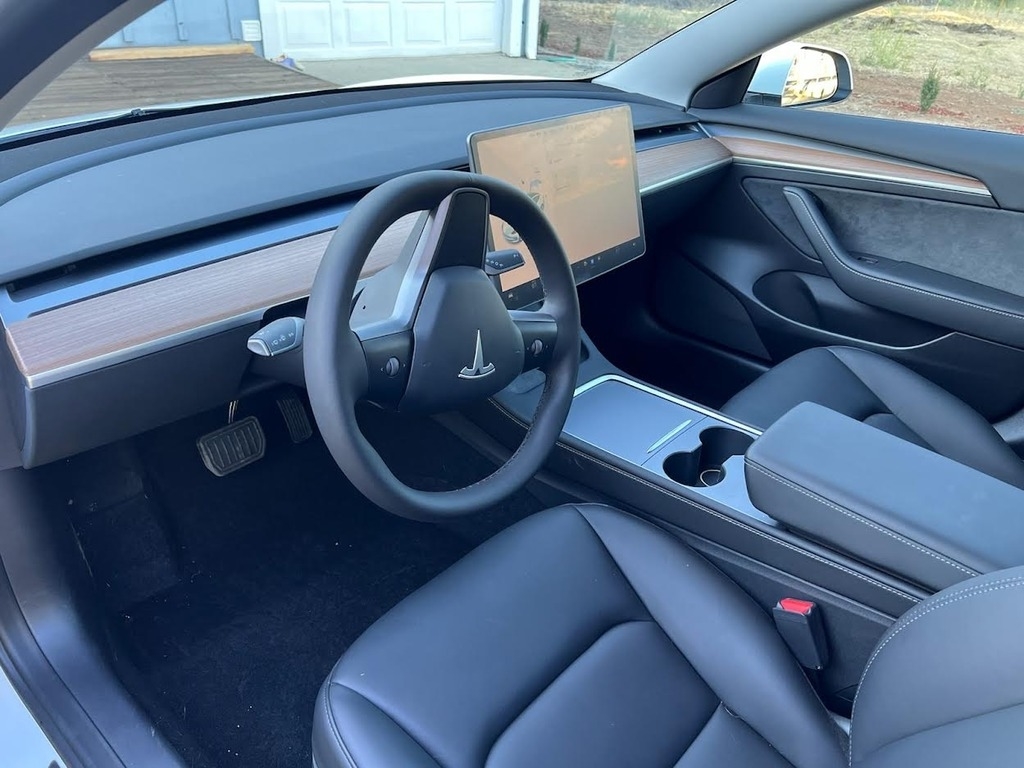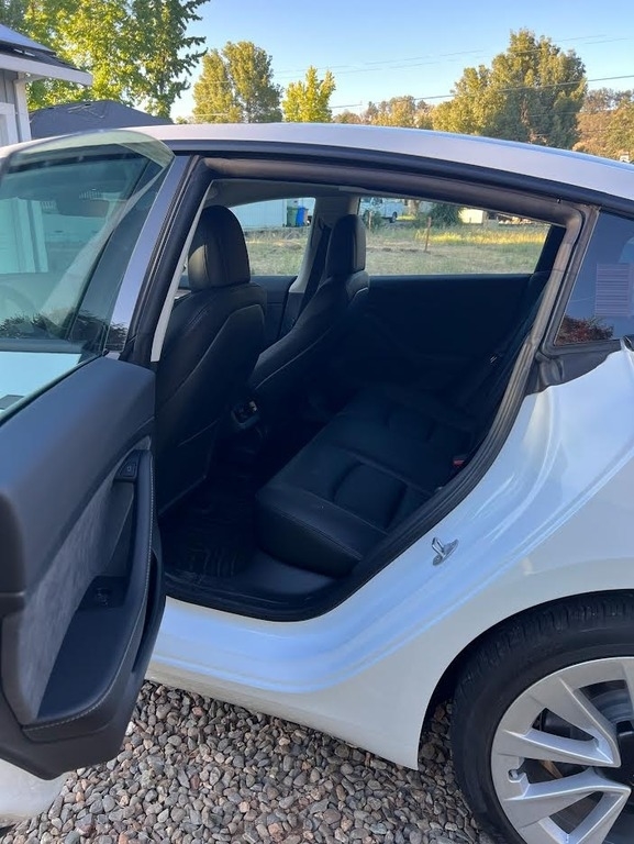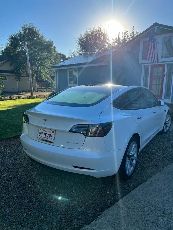 This 2022 Tesla Model 3 Long Range Sedan is powered by a 346 HP electric motor paired with an automatic transmission. This Tesla Model 3 is shown in Pearl White with a black leather interior. This vehicle is still under warranty.