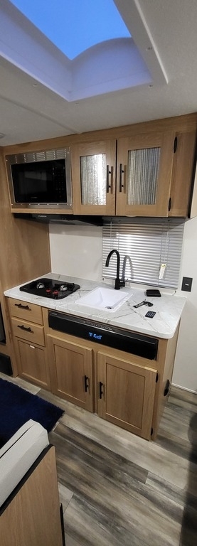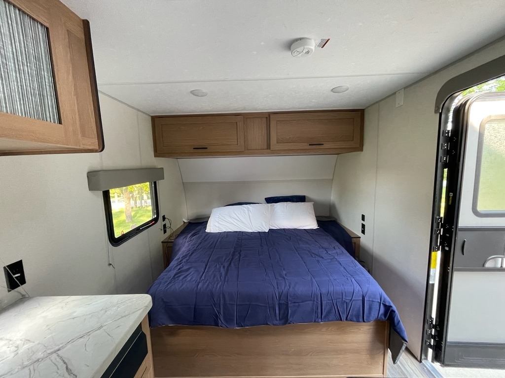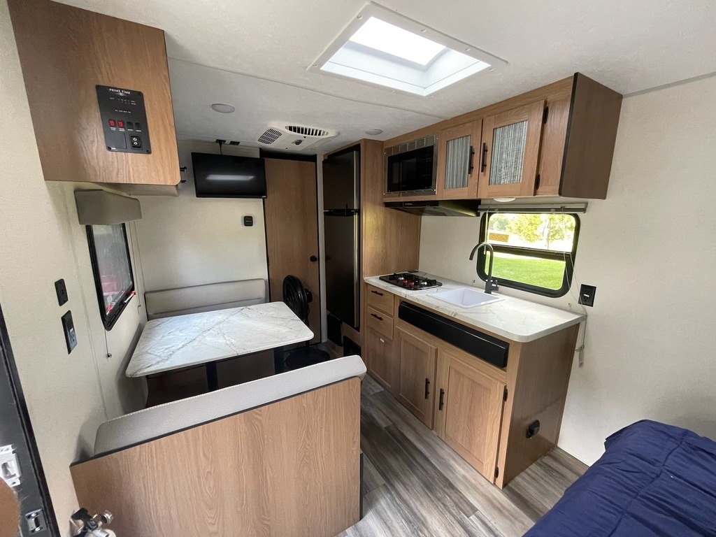 This 2022 Prime time Manufacturing Avenger LT 16FQ Travel Trailer is 21.92 feet long and comes equipped with a power patio awning with LED lighting, an air conditioning unit, and can sleep three people comfortably. This trailer has only been used a couple times and is still in excellent condition. The trailer is only two months old and just went through the dealer prep inspection. There is a lot of space and storage to this trailer with a full pass through under bed access.