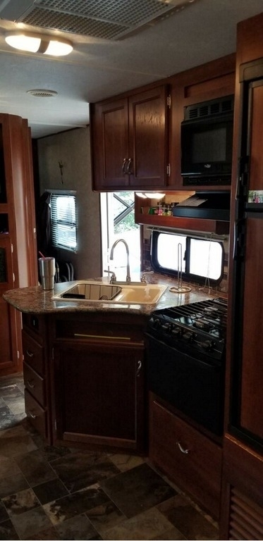 This 2014 Prime Time Avenger is 34 feet in length and comes equipped with 3 Slide Outs, 1 Awning, 1 A/C unit and plenty of room to sleep 10. This is a non-pet/non-smoking RV and there has not been any accidents or water damage.