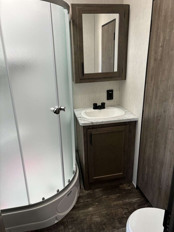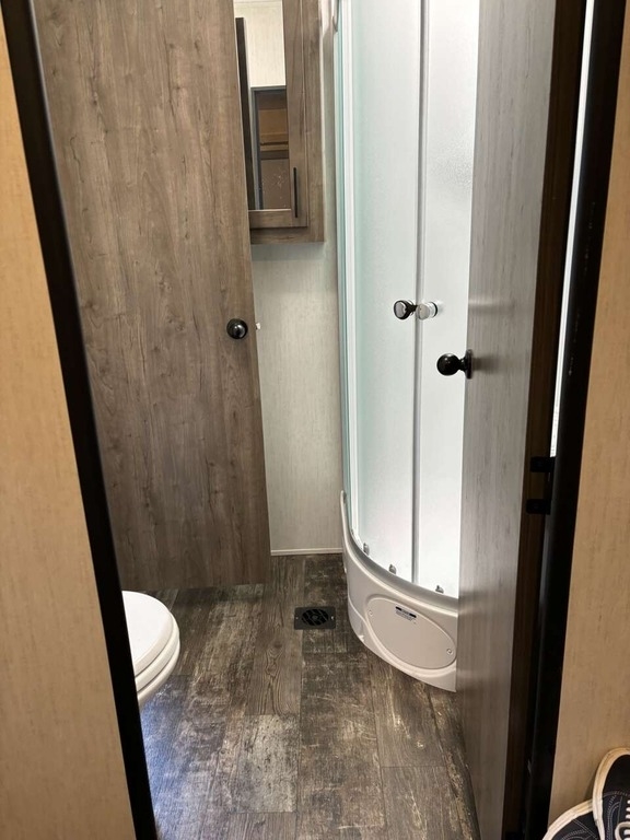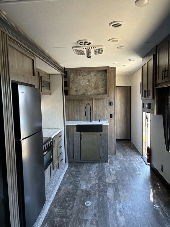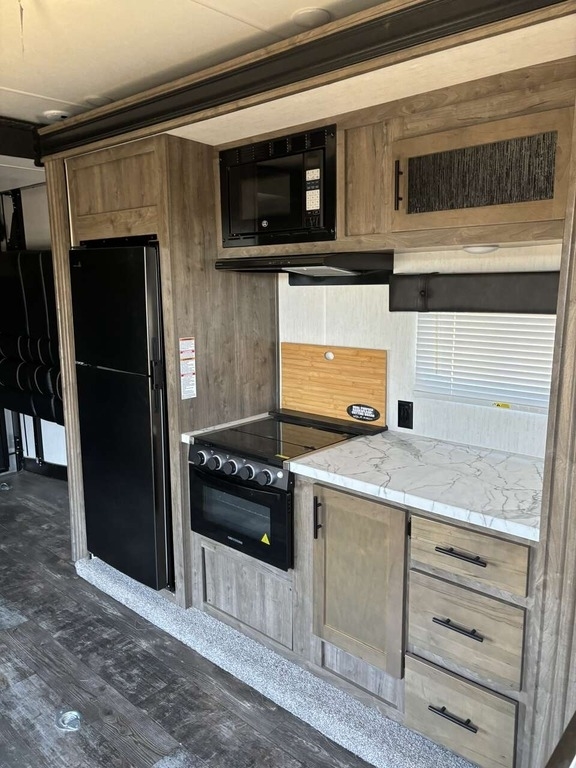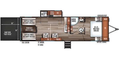 This Forest River has an overall length of 33.42 feet and comes