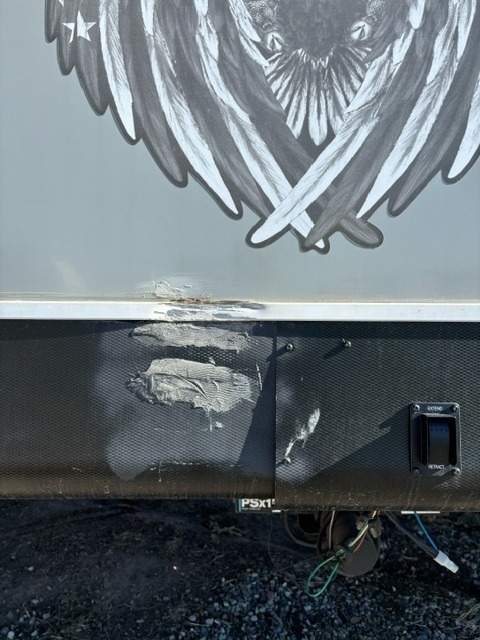 sleeps 6, 1 slide-out, on-board fueling station. Trailer has damage to one