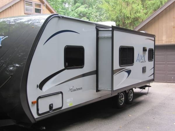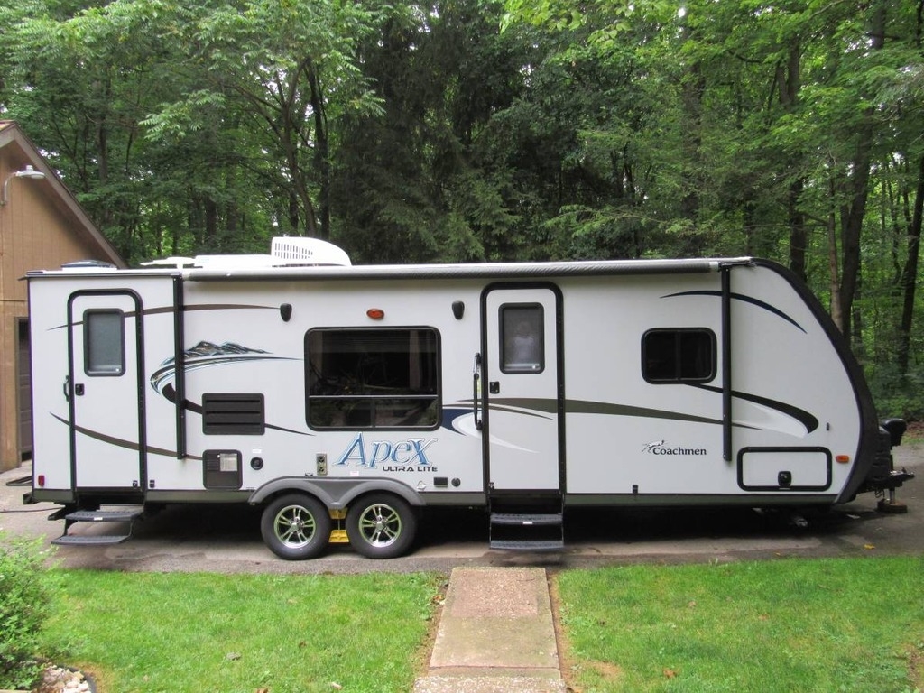 This 2015 Coachman Apex Ultra-Lite has an overall length of 28.3 Feet, and comes equipped with 1 Slide Out, 1 Automatic Power Awning, 1 A/C Unit, and room to sleep 4. This unit is Non-Pet/Non-Smoking and has not had any Accidents or Water Damage.
