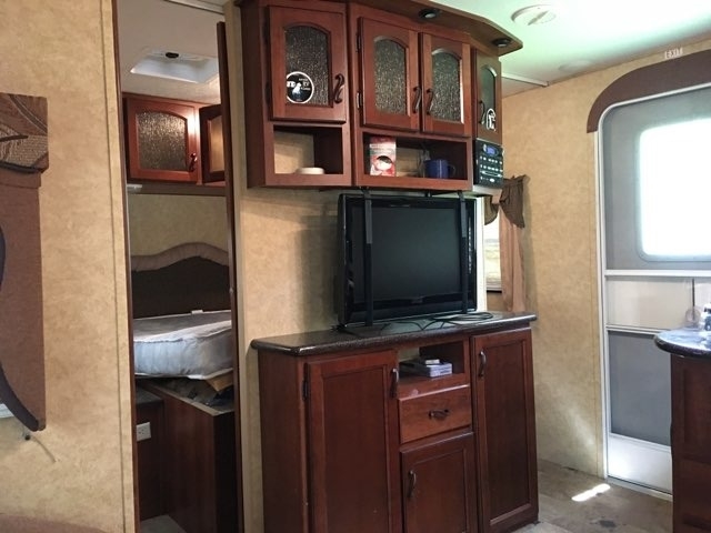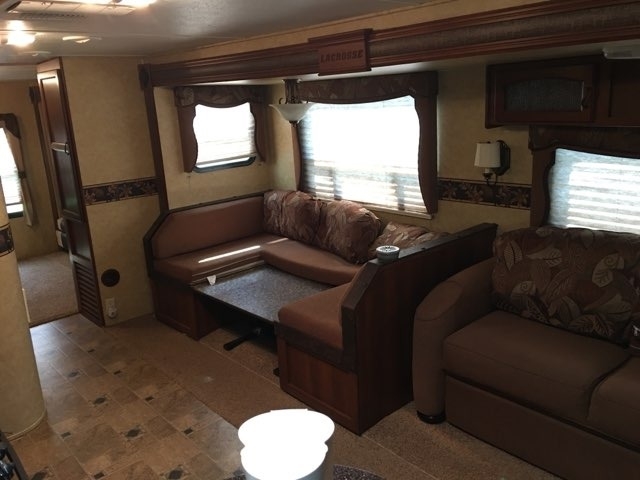 This ’12 Lacrosse 318BHS has an overall length of 35 feet and comes equipped with an Onan Gas Generator, 2 Slide Outs, 1 Awning, 1 A/C unit and plenty of room to sleep 8-10.