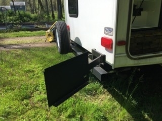Small tear in linoleum in kitchen in front of sink. Missing two hubcap covers.